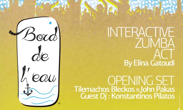 Αυτή την Κυριακή 4 Αυγούστου ελάτε στο «Bord de l’ eau» να χορέψουμε zumba με την Ελίνα Γατούδη και την ομάδα της και να διασκεδάσουμε στο πιο hot beach bar στην παραλία του Αγιόκαμπου. – Opening Set: Tilemachos Bleckos ft John Pakas. – Guest Dj: Konstantinos Pilatos.