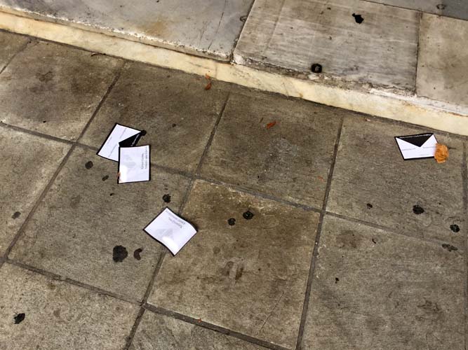 Μικρά χαρτάκια σε σχήμα φακέλου γέμισε το πρωί της Τρίτης το κέντρο της Λάρισας σε μία ομολογουμένως παράξενη ενέργεια κάποιων.