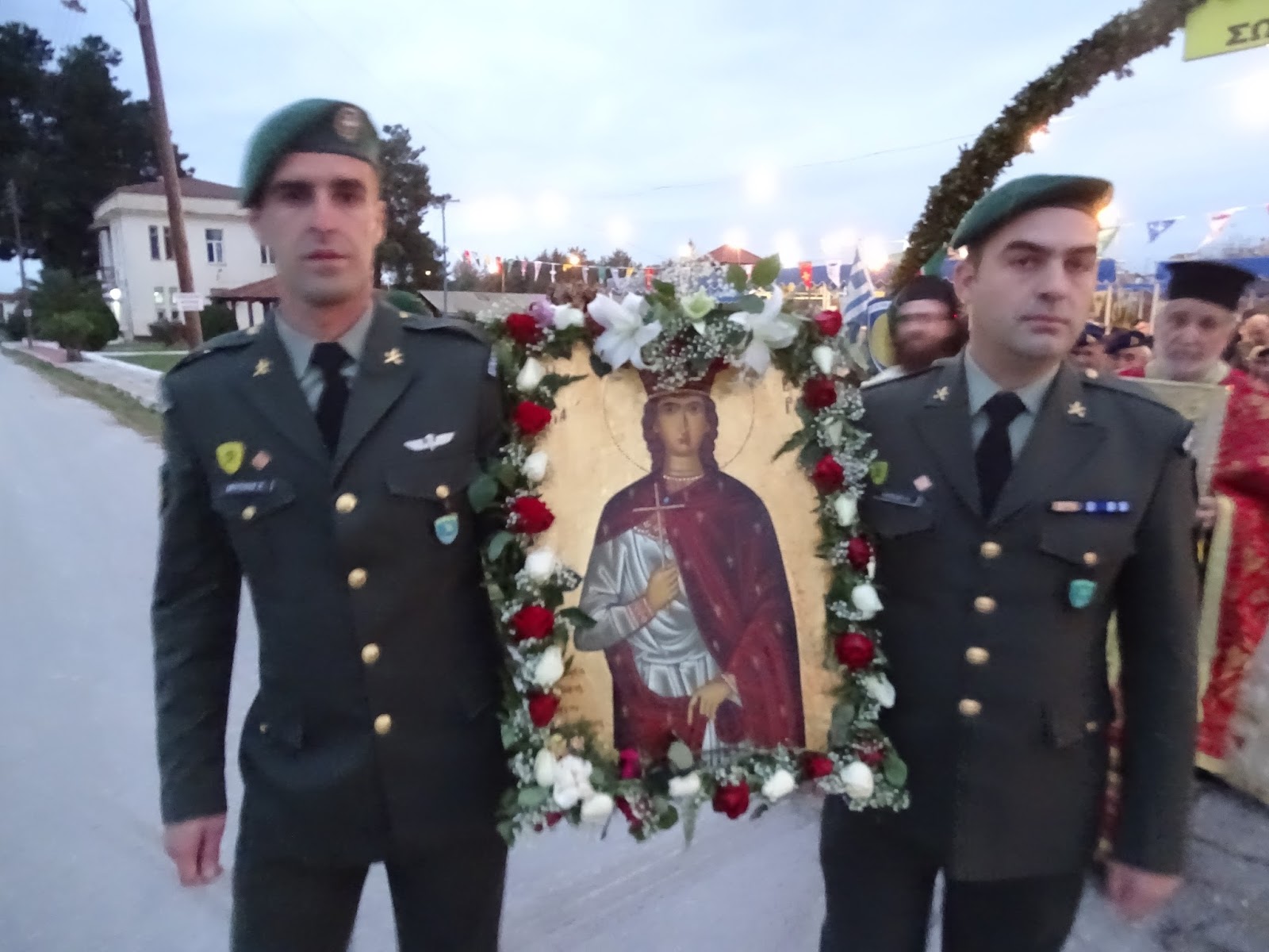 Σημαντική ήταν και φέτος η προσέλευση αρκετών πιστών οι οποίοι τίμησαν τη χάρη της Αγίας Βαρβάρας συμμετέχοντας τόσο στον εσπερινό, την τελετή της αρτοκλασίας καθώς και στην λιτάνευση της ιεράς εικόνας στους χώρους του στρατοπέδου.