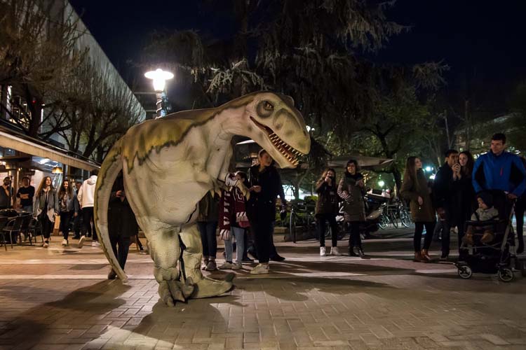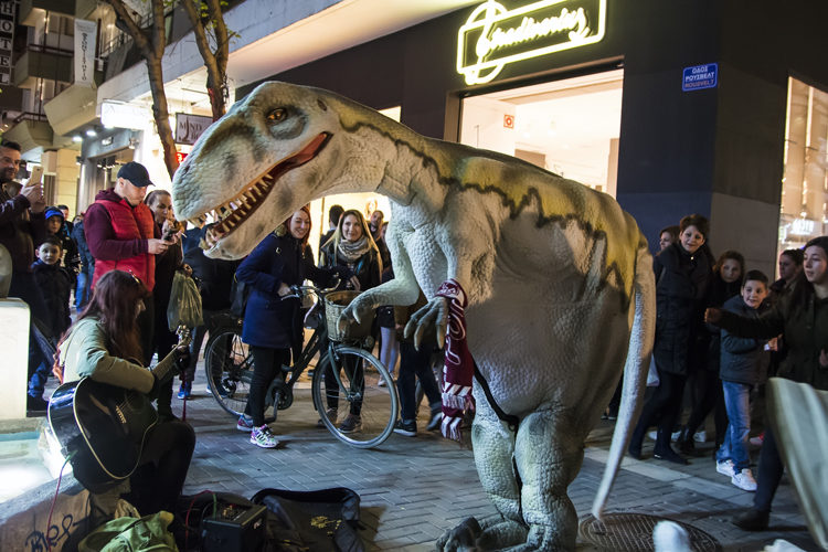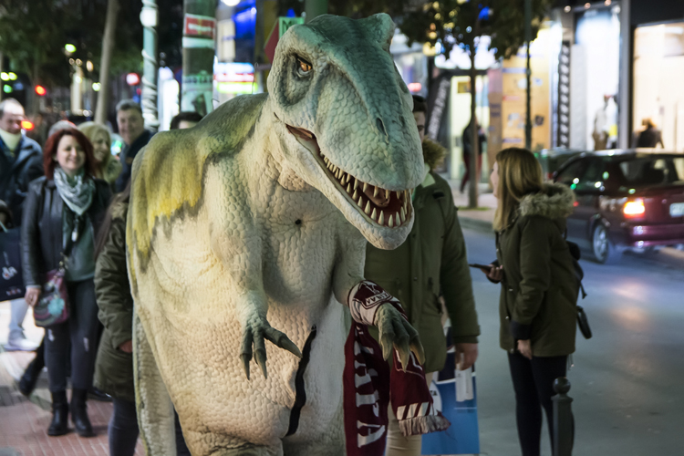Ο ζωηρός δεινόσαυρος βρέθηκε να περιηγείται στο κέντρο της Λάρισας ενώ αυτόπτες μάρτυρες ανέφεραν ότι φορούσε και ένα κασκόλ της ΑΕΛ και έψαχνε το γήπεδο… Ο μικρός ΡΕΞ αφού ήπιε ένα βαρέλι φραπέ άρχισε να χορεύει με τους περαστικούς και αρνήθηκε να πάει ξανά στο πάρκο.