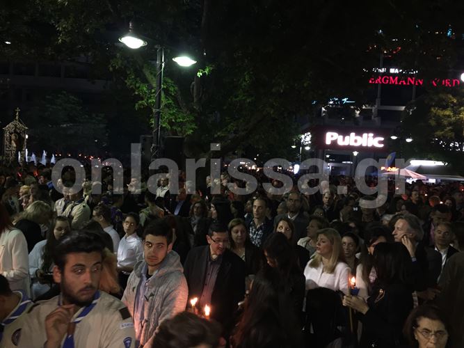 Πλήθος Λαρισαίων συνέρρευσαν το βράδυ της Μεγάλης Παρασκευής σε κλίμα κατάνυξης στην Κεντρική πλατεία της πόλης όπου κατέληξαν οι επιτάφιοι μετά την περιφορά τους από κεντρικές οδούς, στην κορύφωση του Θείου Δράματος.