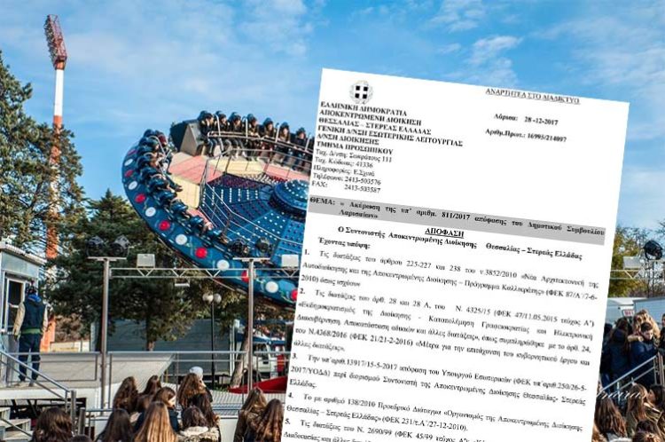 - Τονίζεται επίσης πως στη συγκεκριμένη σύμβαση αναφέρεται “ορίζεται ότι ο εκμισθωτής είναι αποκλειστικά υπεύθυνος για την εγκατάσταση, λειτουργία, συντήρηση ….του συνόλου των εγκαταστάσεων που θα απαρτίζουν το λούνα Παρκ, το παγοδρόμιο κτλ.» ενώ βάσει της κείμενης νομοθεσίας, “ο αδειοδοτών Δήμος έχει υποχρέωση ελέγχου των εγκαταστάσεων όχι μόνο κατά τον χρόνο εγκατάστασης των ψυχαγωγικών παιδειών αλλά και κατά τη διάρκεια της λειτουργίας τους προς τυχόν διαπίστωση παραβιάσεων και επιβολή κυρώσεων”.