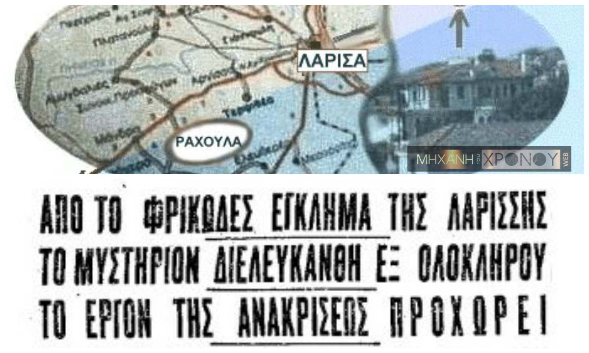 Το 1928 μια αστυνομική υπόθεση συγκλόνισε την κοινωνία της Λάρισας. Μια πενταμελής συμμορία, απήγαγε τον γαιοκτήμονα Καρούσο, ζητώντας λύτρα για να τον απελευθερώσουν. Η εξέλιξη ωστόσο ήταν απρόβλεπτη και αιματηρή. Τα ξημερώματα της 4ης Ιουνίου του 1928, τρία μέλη της συμμορίας απήγαγαν τον γαιοκτήμονα Καρούσο δύο χιλιόμετρα έξω από την Λάρισα, και τον οδήγησαν στο χωριό Ραχούλα. Ο αιχμάλωτος Καρούσος οδηγήθηκε δεμένος σε αχυρώνα σπιτιού και μετά σε σπηλιά.