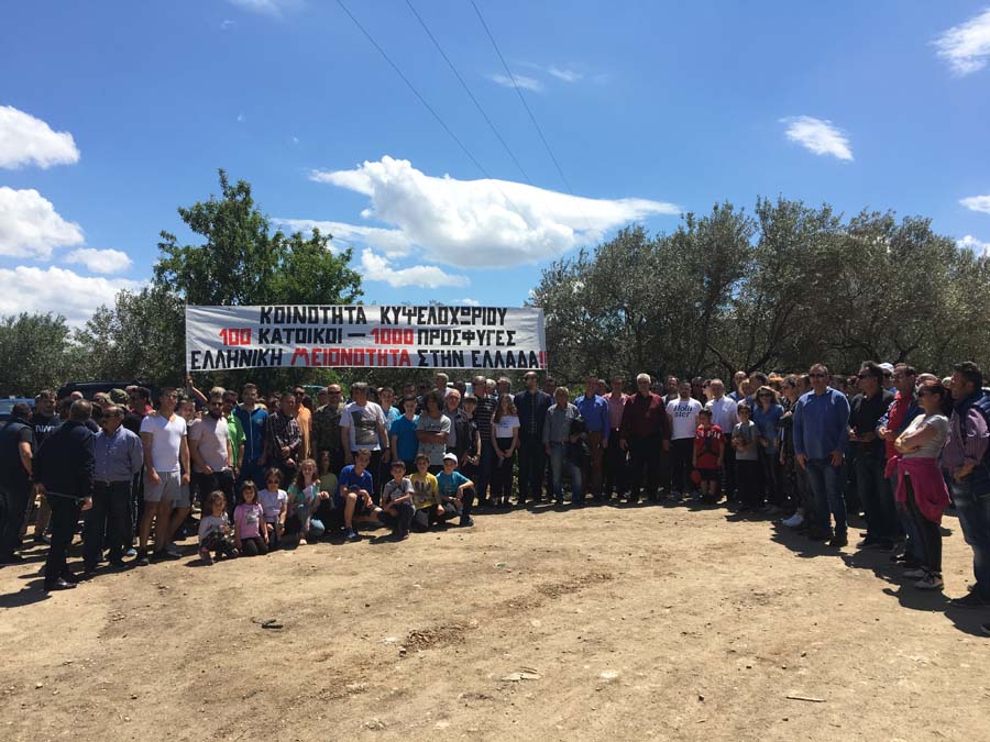 Χαρακτηριστικά ήταν τα όσα αναγράφονταν στα πανό όπως το «Κοινότητα Κυψελοχωρίου – 100 κάτοικοι 1000 πρόσφυγες, ελληνική μειονότητα στην Ελλάδα», μέσω των οποίων οι κάτοικοι εκφράζουν την αντίθεσή τους στην δημιουργία του συγκεκριμένου καταυλισμού προσφύγων.