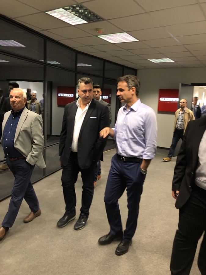 “Παρακολουθώ την πορεία της εταιρείας και χαίρομαι για την ανάπτυξη της. Στόχος μου είναι η κυβέρνηση της ΝΔ να διευκολύνει με την πολιτική της όλες τις επιχειρήσεις να αναπτυχθούν, ώστε να δημιουργηθούν νέες θέσεις εργασίας στην χώρα μας”, δήλωσε ο Κυριάκος Μητσοτάκης, ο οποίος ξεναγήθηκε στους χώρους διοίκησης και παραγωγής και συνομίλησε με τους εργαζομένους της επιχείρησης.
