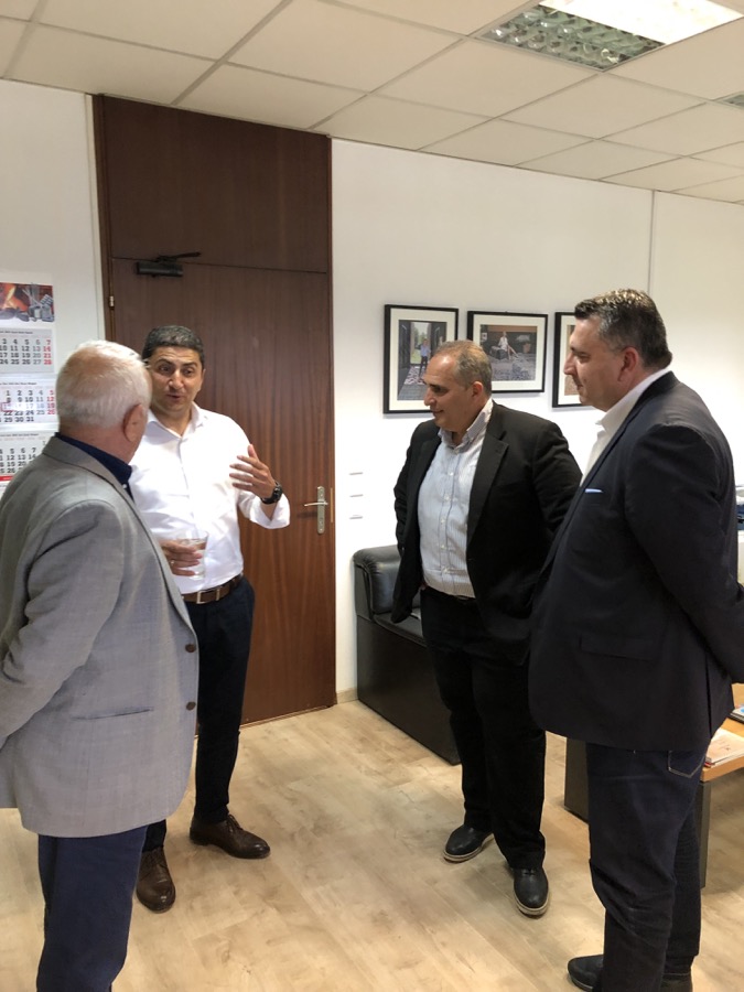 Τον πρόεδρο της ΝΔ υποδέχθηκε ο πρόεδρος του ομίλου κ. Γιάννης Καντώνιας, με τον οποίο συνδέεται με στενή φιλία χρόνων, καθώς και τα μέλη του ΔΣ της εταιρείας Γιώργος Καντώνιαςκαι Βασίλης Τσιάρας.