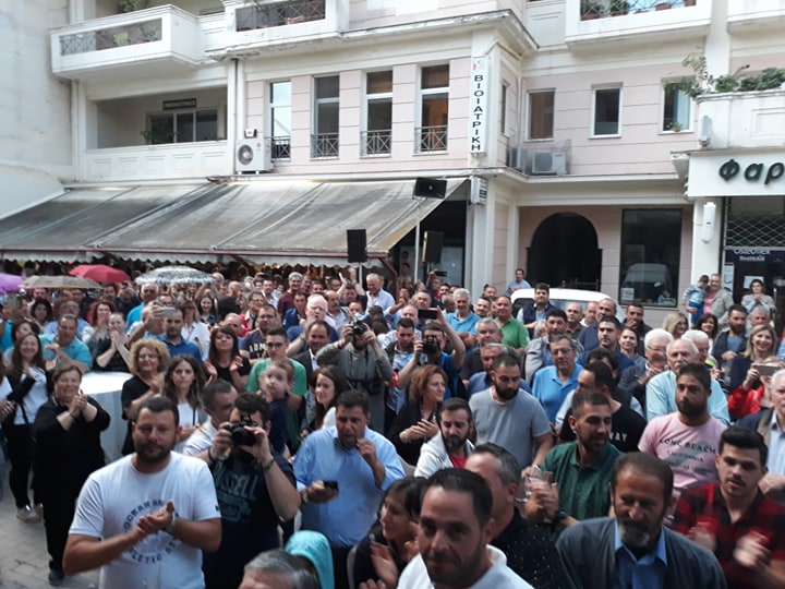 Πλήθος κόσμου έχει κατακλύσει τον πεζόδρομο της Πατρόκλου στα Φάρσαλα, εκεί όπου βρίσκεται το εκλογικό κέντρο του πανηγυρικά εκλεγμένου σήμερα δημάρχου Φαρσάλων Μάκη Εσκίογλου.