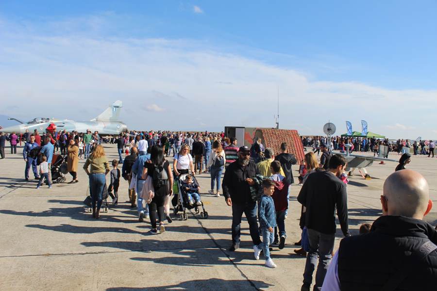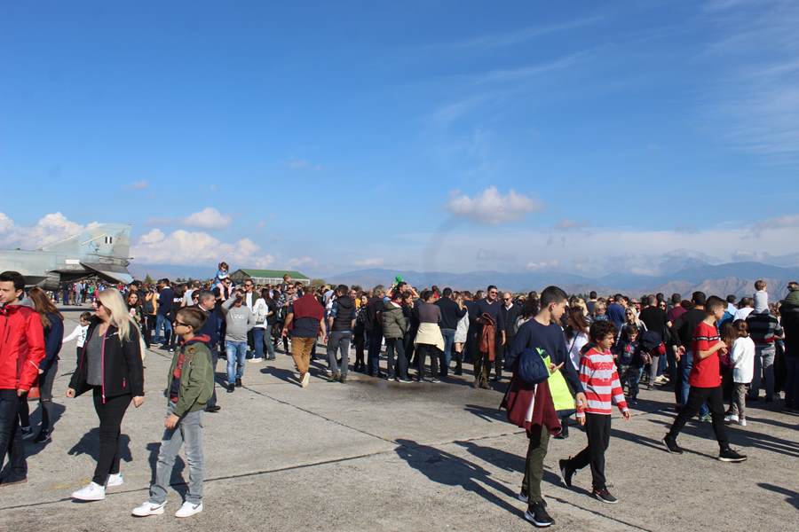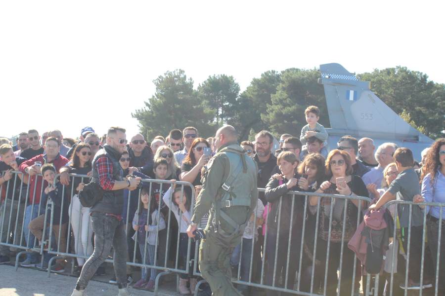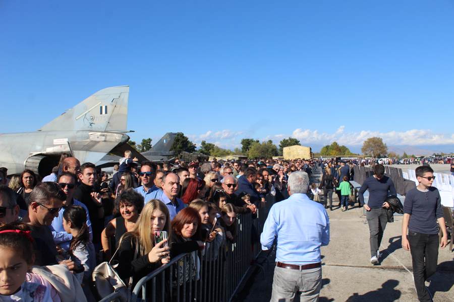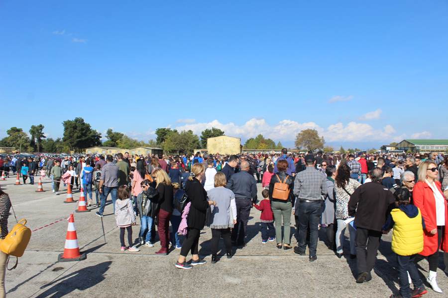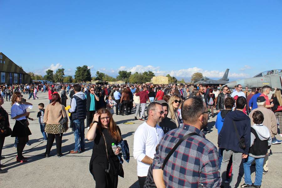 Οι εντυπωσιακοί ελιγμοί στον αέρα ενθουσίασαν τους Λαρισαίους που παρακολούθησαν την επίδειξη.
