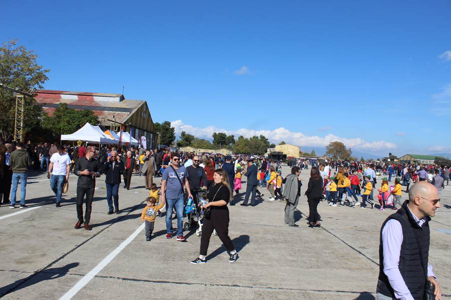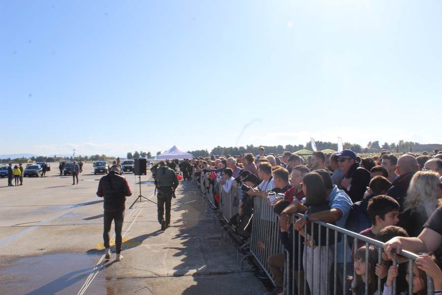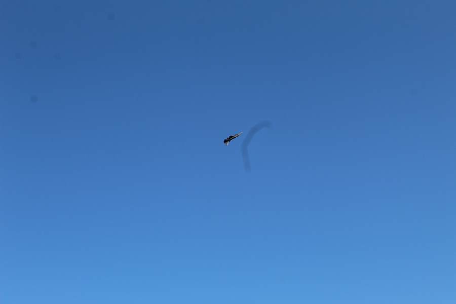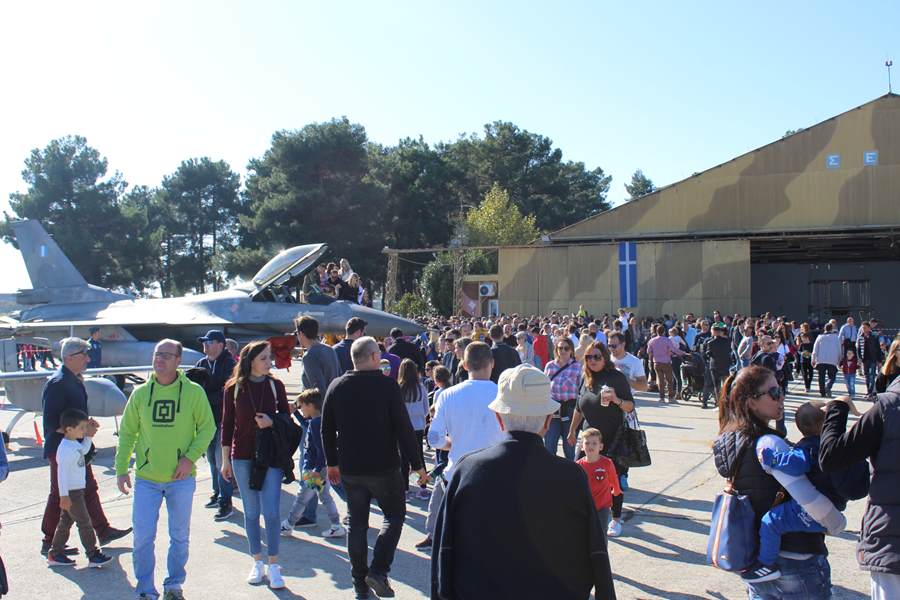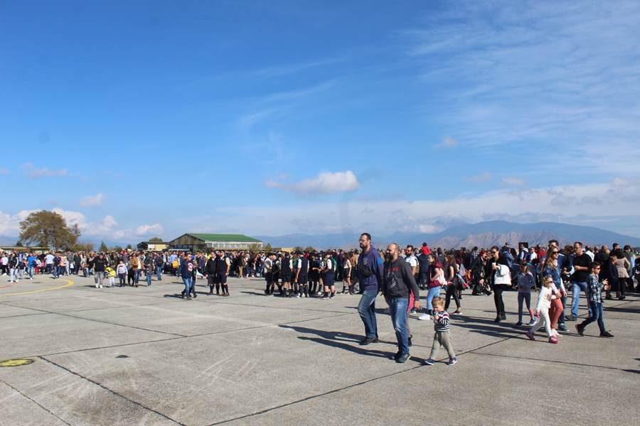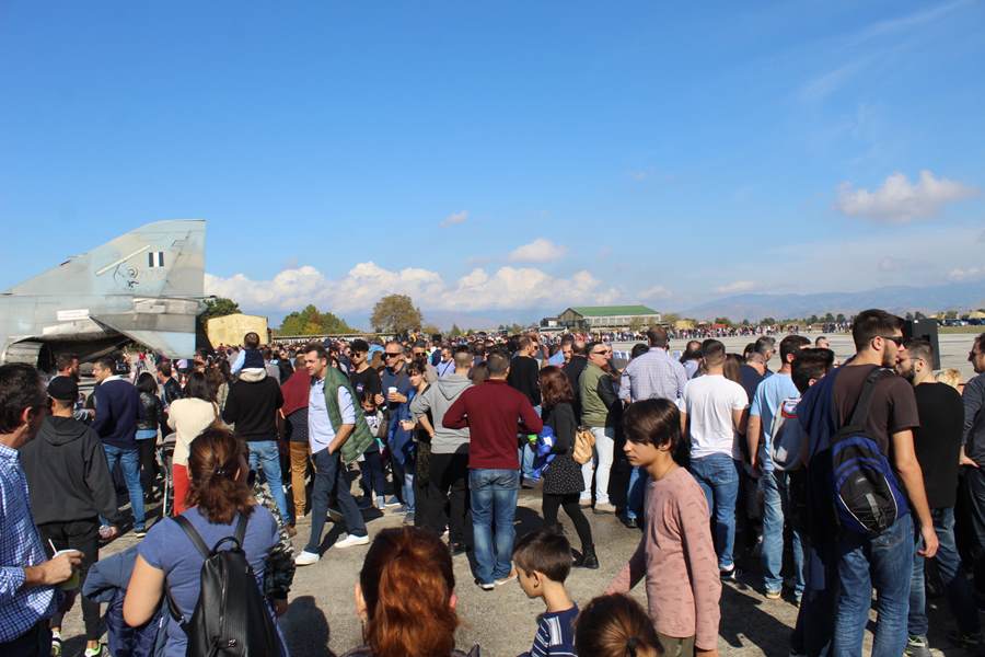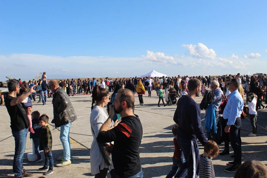 Οι εντυπωσιακοί ελιγμοί στον αέρα ενθουσίασαν τους Λαρισαίους που παρακολούθησαν την επίδειξη.