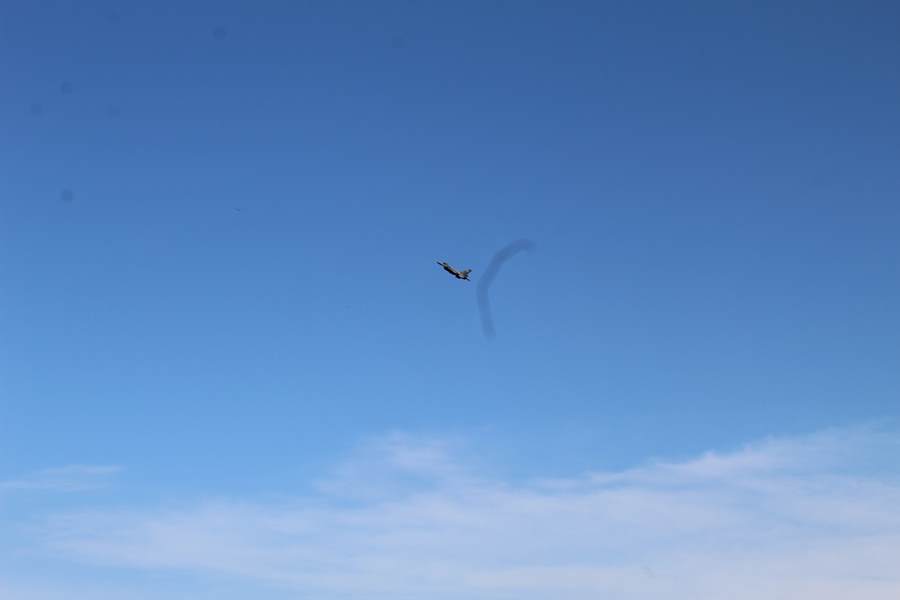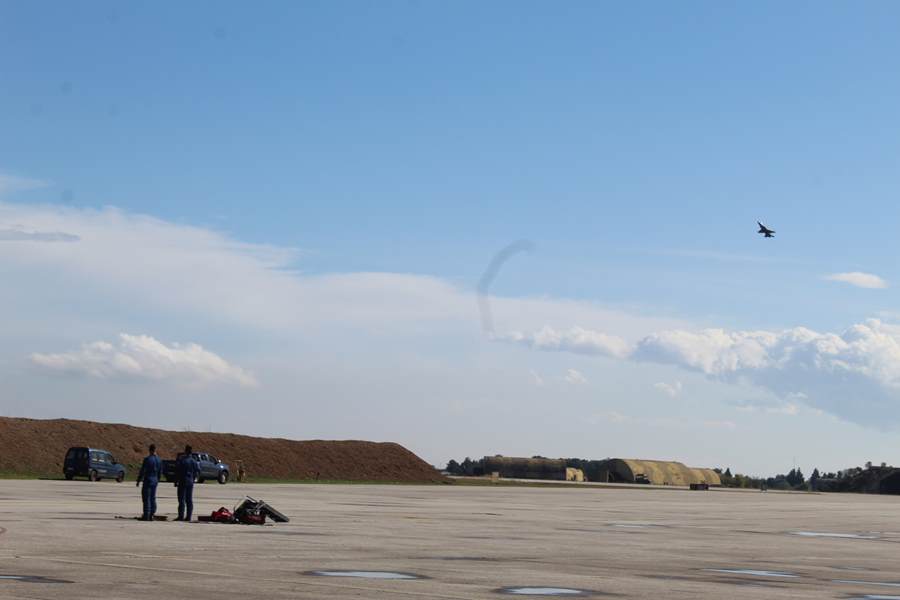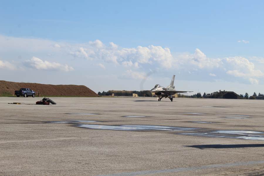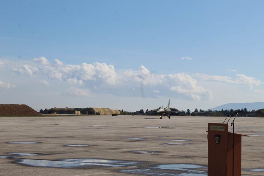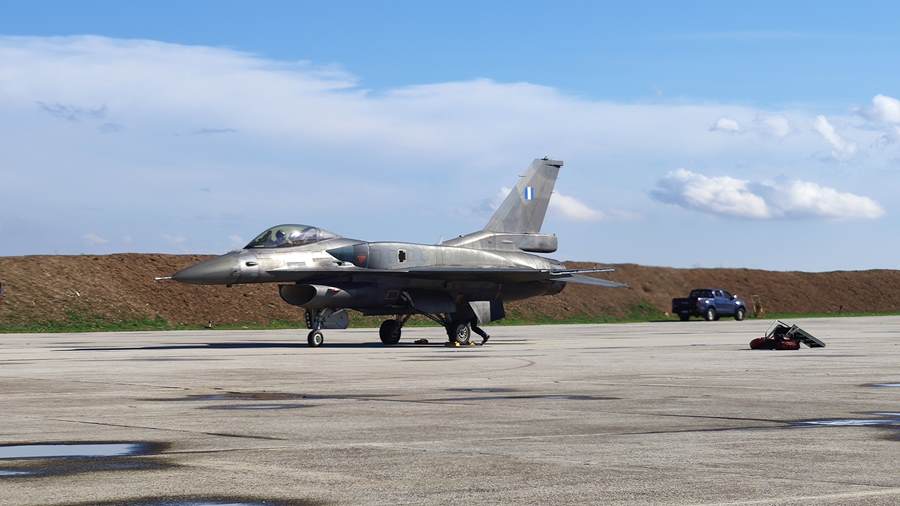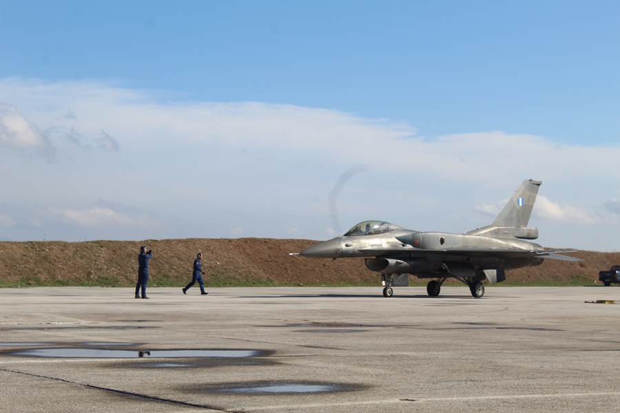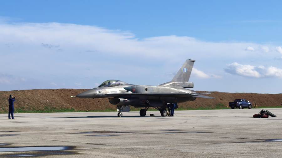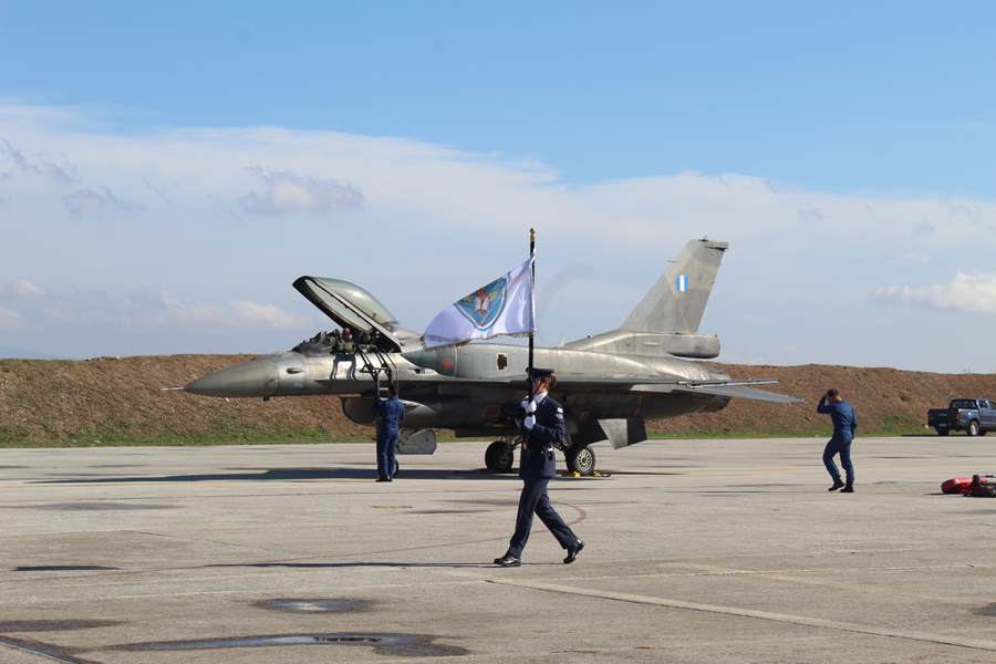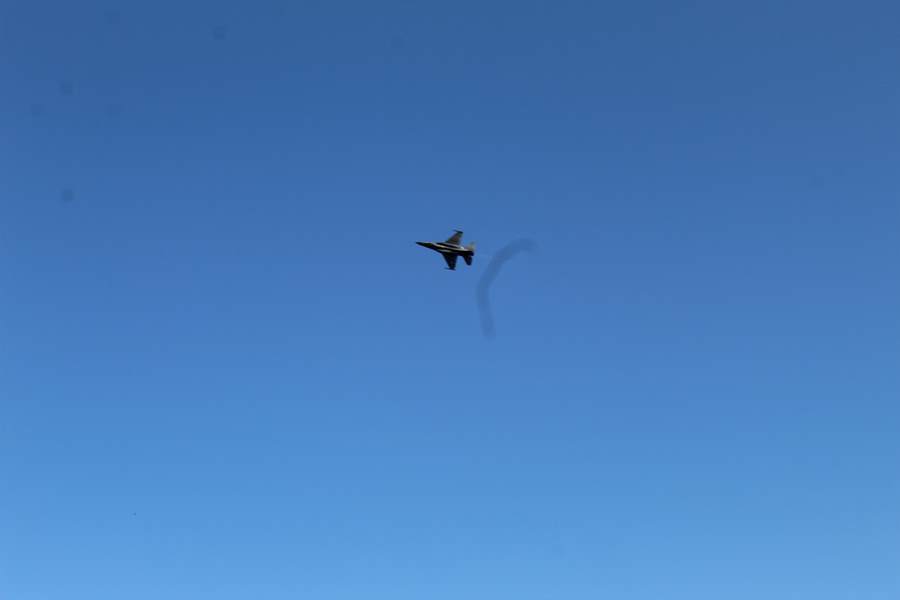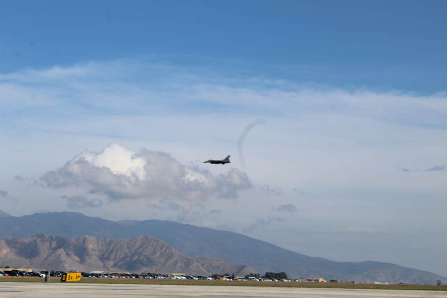 Εντυπωσιακή αεροπορική επίδειξη της Ομάδας Αεροπορικών Επιδείξεων Μεμονωμένου Αεροσκάφους F-16 «Ζευς» νωρίς το μεσημέρι της Κυριακής στη Λάρισα στο πλαίσιο ων εκδηλώσεων εορτασμού της Πολεμικής Αεροπορίας.
