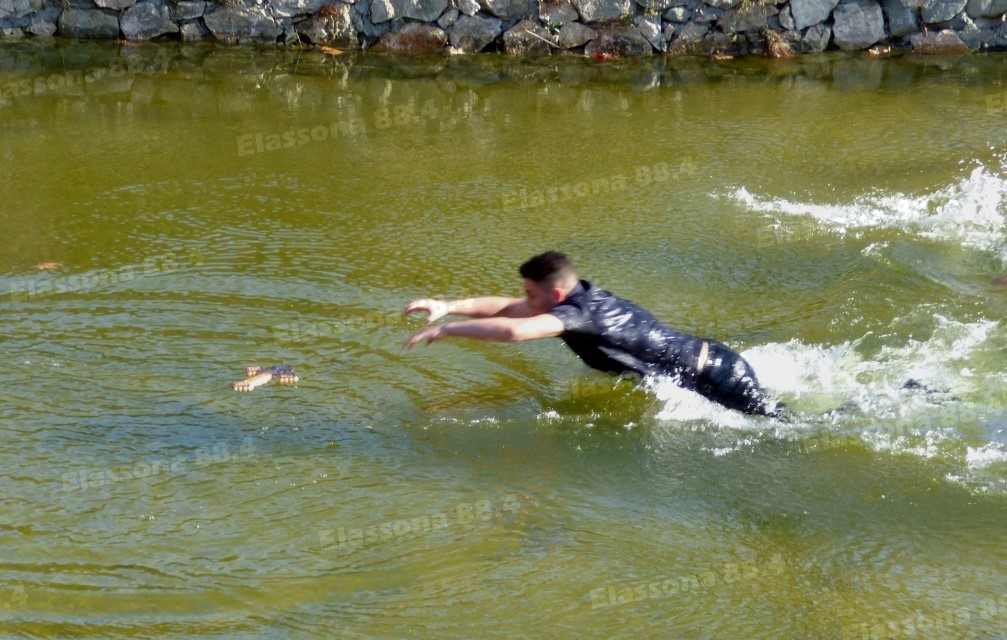 Εκεί, όπως γίνεται κάθε χρόνο, κατά μήκος της κοίτης του ποταμού, είχαν συγκεντρωθεί πολλοί Ελασσονίτες, για να παρακολουθήσουν την καθιερωμένη ρίψη του Τιμίου Σταυρού. Ο μητροπολίτης κ. Χαρίτων, αφού άφησε να πετάξουν ελεύθερα τα λευκά περιστέρια (…όπως απαιτεί το έθιμο), έριξε τον Σταυρό στα νερά του «παγωμένου» Ελασσονίτη, όπου βούτηξαν τέσσερις τολμηροί νεαροί κολυμβητές.