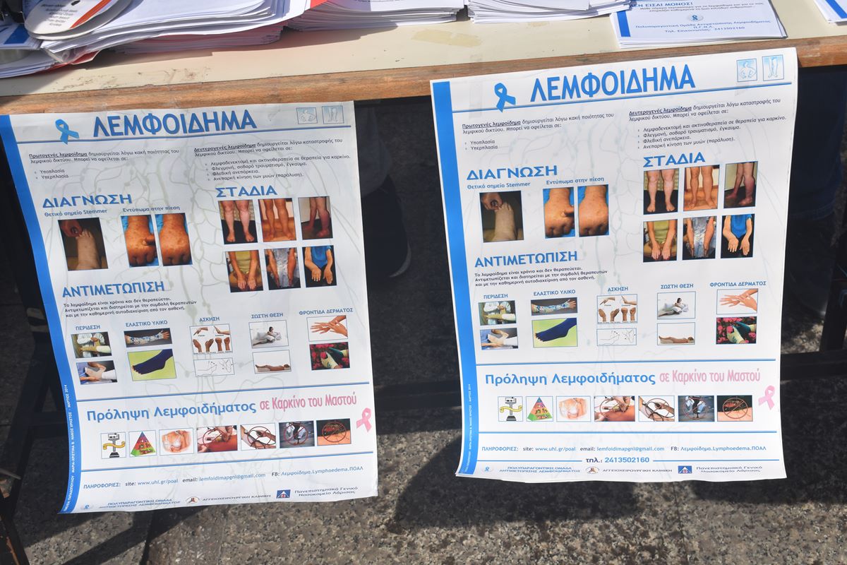 Η Πολυπαραγοντική Ομάδα Αντιμετώπισης Λεμφοιδήματος (Π.Ο.Α.Λ.), που λειτουργεί στο Πανεπιστημιακό Γενικό Νοσοκομείο Λάρισας, το μοναδικό οργανωμένο πρόγραμμα αντιμετώπισης λεμφοιδήματος στο Δημόσιο Τομέα, στο πλαίσιο της δράσης «Πρόληψη λεμφοιδήματος σε καρκίνο του μαστού», πραγματοποιεί την σημαντική αυτή δράση.
