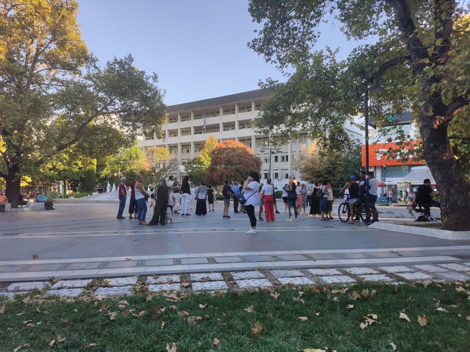 Παράλληλα μία μερίδα γονέων συγκεντρώθηκε στην κεντρική πλατεία Λάρισας, χαιρετώντας τη μοτοπορεία, όταν πέρασε από εκεί: