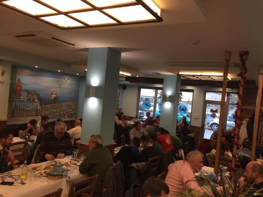 Πρώτη μας στάση, η Νέα Καστέλα, στο 1 χλμ. της Λεωφόρου Καραμανλή. Καθημερινή, αλλά το μαγαζί γεμάτο από κόσμο που τελείωσε τις δουλείες του από τα γύρω μαγαζιά και τα εργοστάσια. Αρχίζουμε ωραία, σκέφτομαι τρώγοντας κρίταμα –που αλλού να βρεις; – και χαζεύω τις παρέες και τη βαβούρα από τις συζητήσεις που ανάβουν όσο περνά η ώρα.