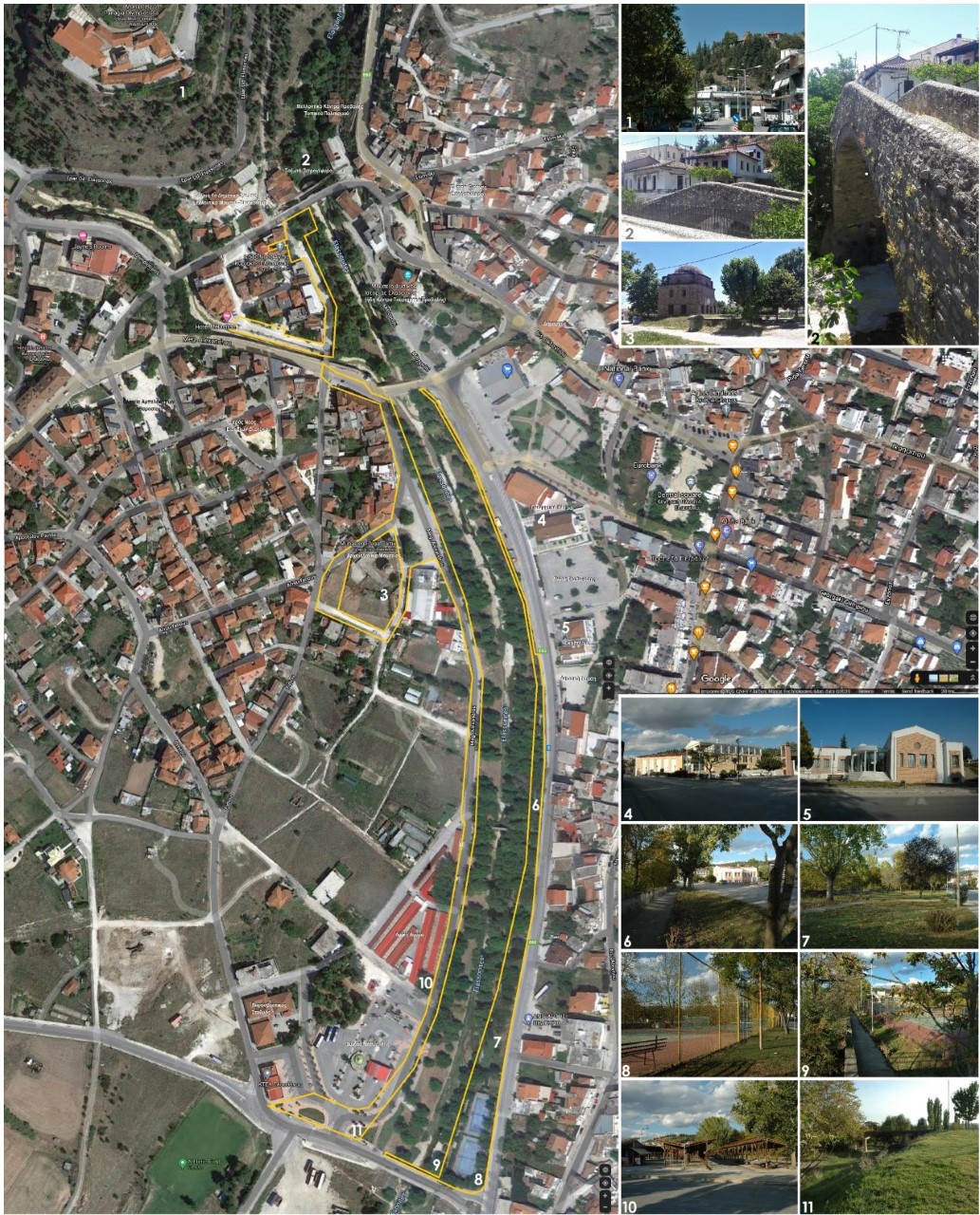 - Βορειοδυτική ζώνη που περιλαμβάνει ολόκληρη την περιοχή που συνδέει το παλιό πέτρινο γεφύρι στη βόρεια πλευρά της και στη συνέχεια με το Μοναστήρι της Ολυμπιώτισσας.