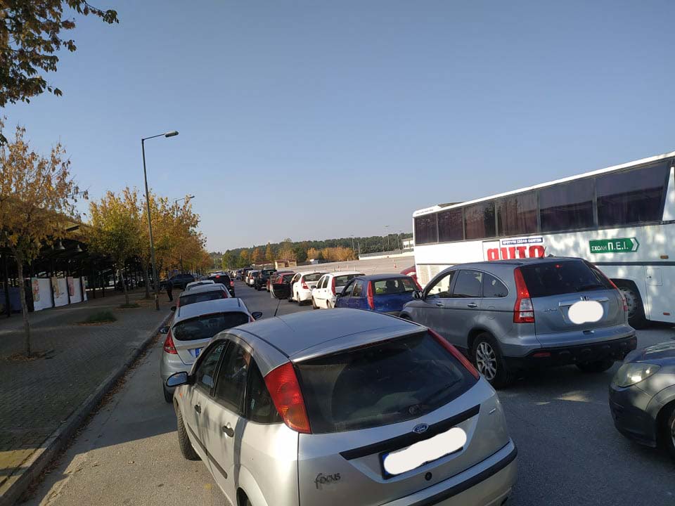 Ουρές αυτοκινήτων στη σκεπαστή της Νεάπολης από Λαρισαίους που σπεύδουν για covid19 rapid test (φωτό – video)