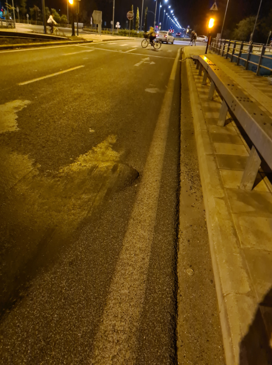 Έξαλλος ο Λαρισαίος πολίτης καλεί τους ιθύνοντες να αναλάβουν τις ευθύνες τους για την κακοτεχνία του σημείου του οδοστρώματος το οποίο όπως ενημερώνει το onlarissa.gr βρίσκεται στον κυκλικό κόμβο αμέσως μετά το Κολυμβητήριο.