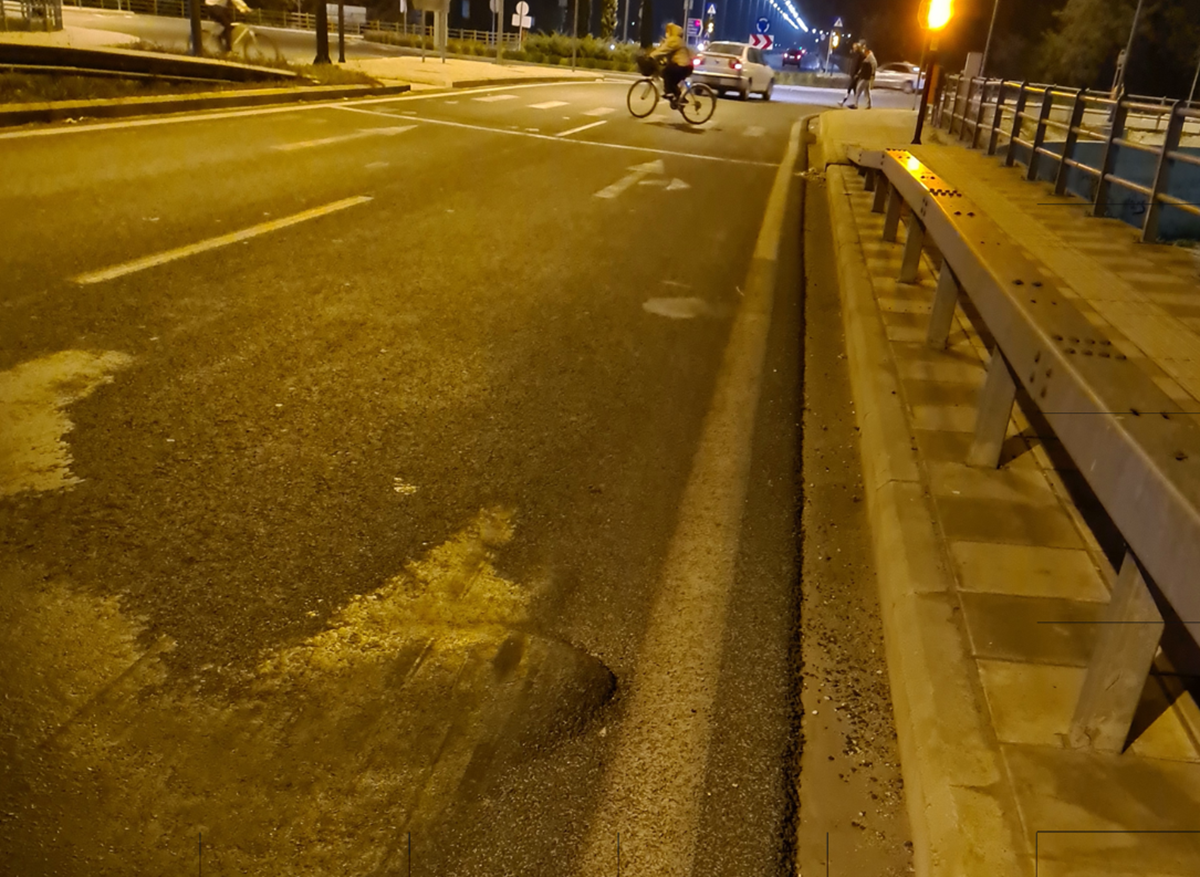 Όπως περιγράφει διέσχιζε το πρωί του Σαββάτου τον δρόμο με το ποδήλατό του, όταν έπεσε πάνω στο συγκεκριμένο εξόγκωμα του οδοστρώματος με αποτέλεσμα να εκτιναχθεί μαζί με το δίτροχο όχημά του και να πέσει πάνω σε διερχόμενο αυτοκίνητο.