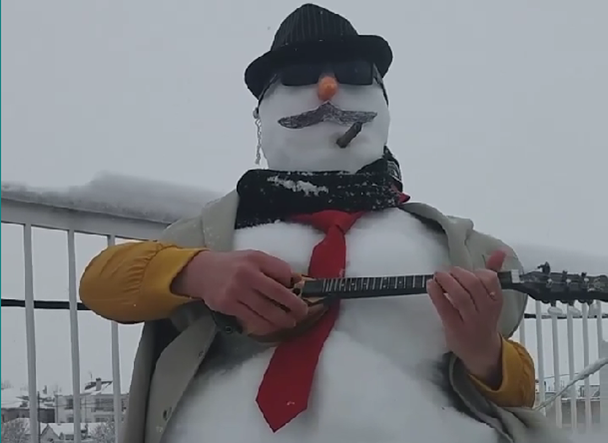 Λάρισα: Χιονάνθρωπος ρεμπέτης παίζει μπαγλαμαδάκι και γίνεται ατραξιόν (βίντεο)