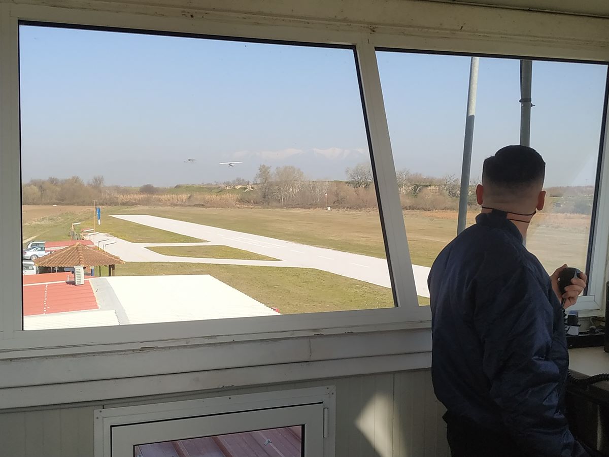 Επιβίβαση, ζώνες ασφαλείας, ακουστικά και η διαδικασία της πτήσης μας ξεκινά με την ενημέρωση και κατάθεση του σχεδίου πτήσης στην 110 Π.Μ., την άδεια απογείωσης από το έδαφος και τον Πύργο Ελέγχου και εν τέλει είμαστε έτοιμοι να ακολουθήσουμε το δικό μας σχέδιο πτήσης 30 λεπτών, το οποίο περιλαμβάνει πτήση μέχρι το Τύρναβο, δεξιά στροφή προς τη Φαλάνη, πτήση πάνω από τις δυτικές παρυφές της Λάρισας και επιστροφή στο Πεδίο Τερψιθέας…