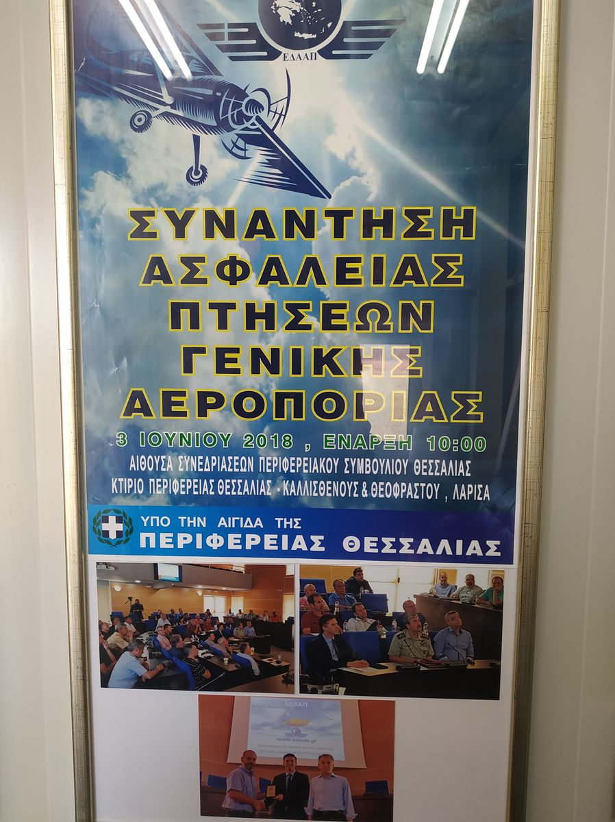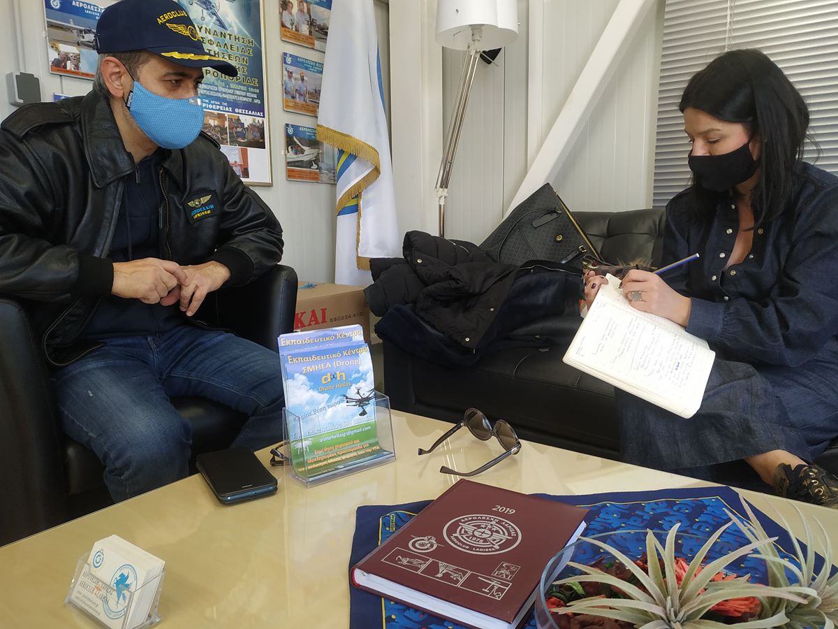 Μας υποδέχεται ο εδώ και επτά χρόνια Αρχιεκπαιδευτής της Αερολέσχης κ. Στέλιος Κοντόπουλος, απόστρατος της Αεροπορίας Στρατού, για να μας ξεναγήσει στις υποδομές του αεροδρομίου να μας μιλήσει για την Αερολέσχη Λάρισας, η οποία ιδρύθηκε το 1975 και αποτελεί σήμερα την πολυπληθέστερη στην Ελλάδα με 200 μέλη, για την Σχολή Χειριστών Υπερελαφρών Αεροσκαφών «Πήγασος» που λειτουργεί από το 2005, καθώς και για τις λοιπές σχολές που λειτουργούν παράλληλα.