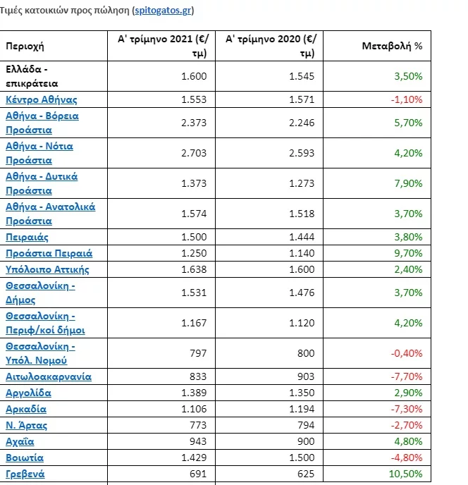 Οι διακυμάνσεις στις τιμές των ακινήτων ανά περιοχή