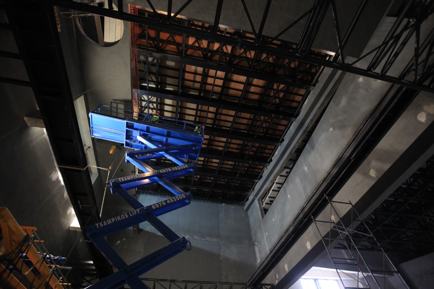 - Τα ηλεκτροκίνητα σταγκόνια σκηνής, δηλαδή 9 μηχανισμοί που θα ανελκύουν στάνταρ φορτίο και θα κάνουν στάνταρ διαδρομή και ομαδική κίνηση. Συγκεκριμένα πρόκειται για 5 μηχανισμούς σε ρόλο μετασχηματισμού ακουστικού, 2 μηχανισμούς για το ρόλο των φωτιστικών σταγκωνιών, 1 μηχανισμό σε ρόλο μεγάλης Οθόνης προβολών και 1 μηχανισμό σε ρόλο διαίρεσης του χώρου σε δύο εκδοχές βάθους σκηνής, ανάλογα με την εκδήλωση.