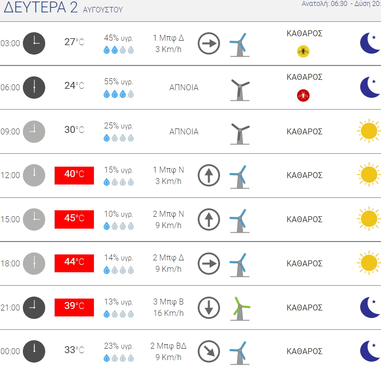 Κυριακή : 40-41°C