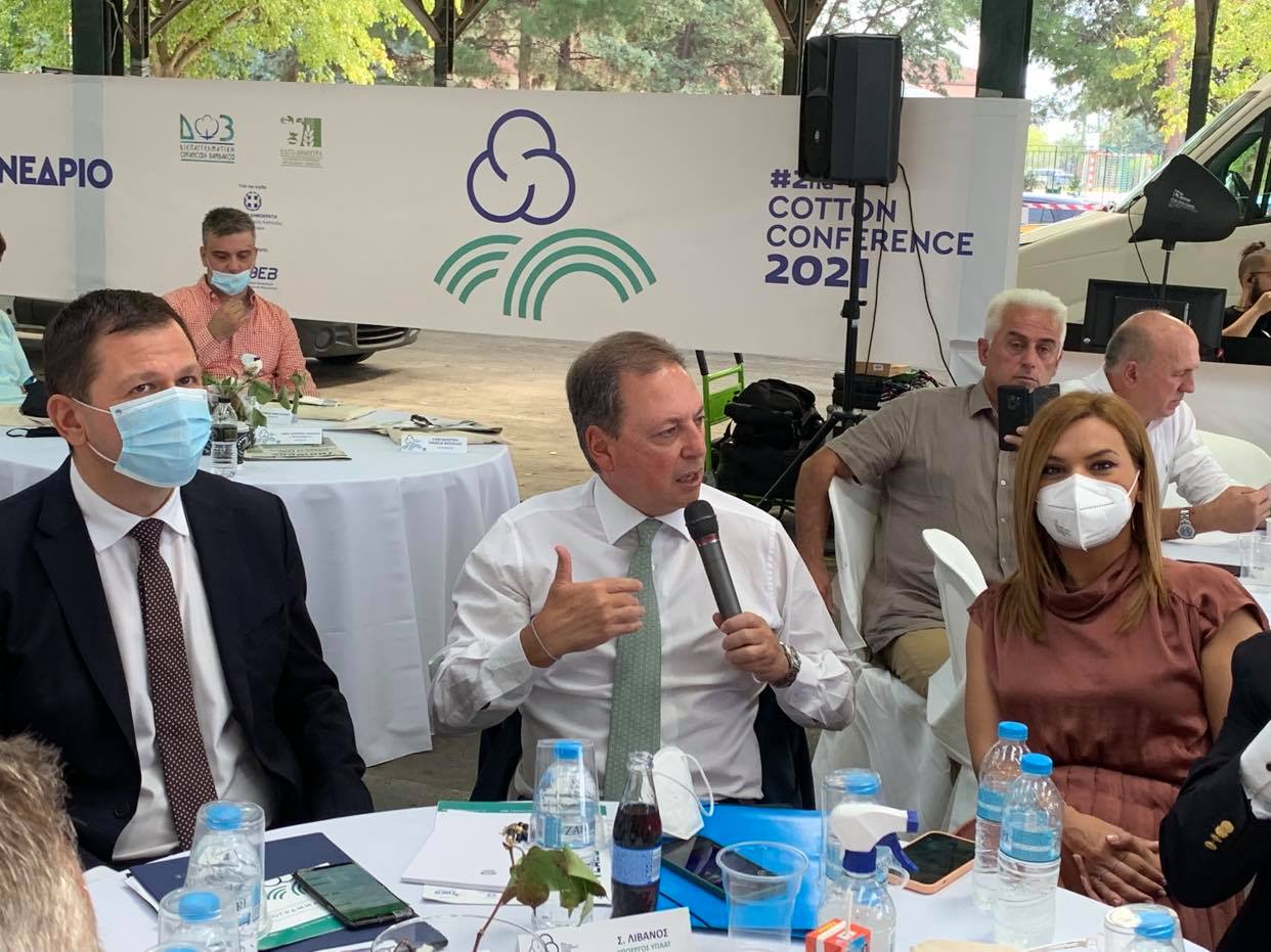 «Σήμερα κ. Υπουργέ είναι μια ευτυχής συγκυρία, να βρίσκεστε εδώ στη Λάρισα και στο 2ο Πανελλήνιο Συνέδριο για το Βαμβάκι, που οργάνωσε ηΔιεπαγγελματική Βάμβακος και ο ΕΛΓΟ ΔΗΜΗΤΡΑ, την ώρα που στην αγορά η τιμή του βάμβακος είναι τόσο υψηλή και οι καλλιεργητές έχουν κάθε λόγο να χαμογελάνε. Ωστόσο εμείς σαν πολιτεία θα πρέπει να εξασφαλίσουμε τους όρους και τις προϋποθέσεις ώστε οι παραγωγοί μας να χαμογελάνε κάθε χρόνο».