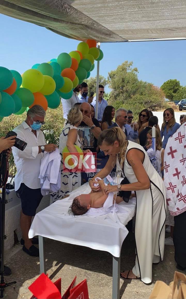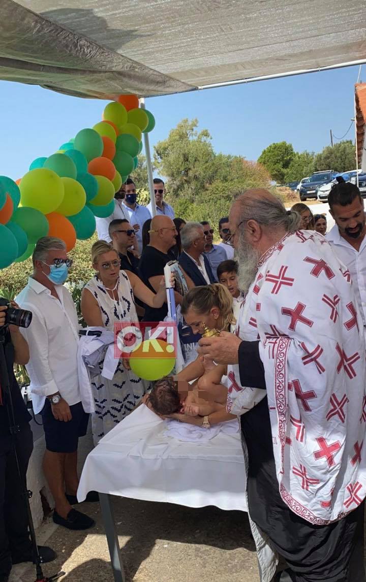 Το μυστήριο έγινε στον Ιερό Ναό του Αγίου Ιωάννη Προδρόμου, στη Μάνη. Στο ίδιο εκκλησάκι βαφτίστηκε και ο μεγάλος γιος του ζευγαριού, Πέτρος, το 2018. Οι νονοί του μικρού είναι δύο, στενοί φίλοι του ζευγαριού που δεν ανήκουν στο χώρο της showbiz.