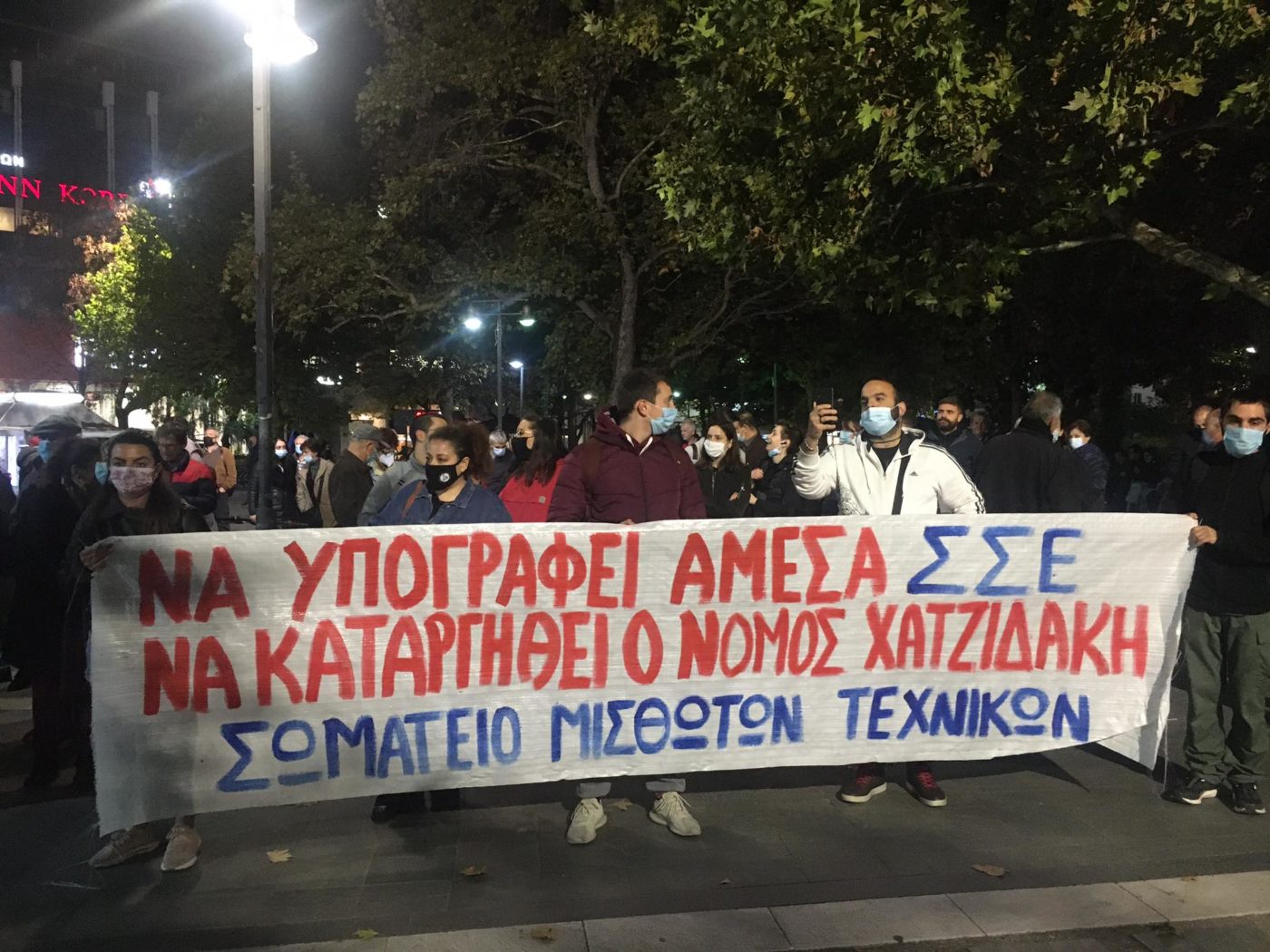 Οι ομιλητές ζήτησαν άμεσα μέτρα προστασίας του λαού, στήριξη του αγώνα για τις συλλογικές συμβάσεις εργασίας και κατάργηση του “νόμου Χατζηδάκη”.