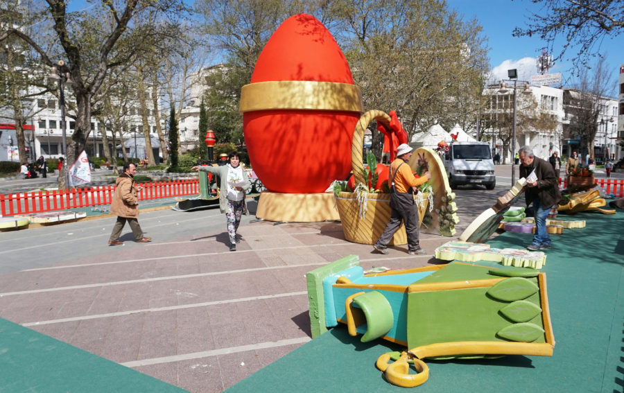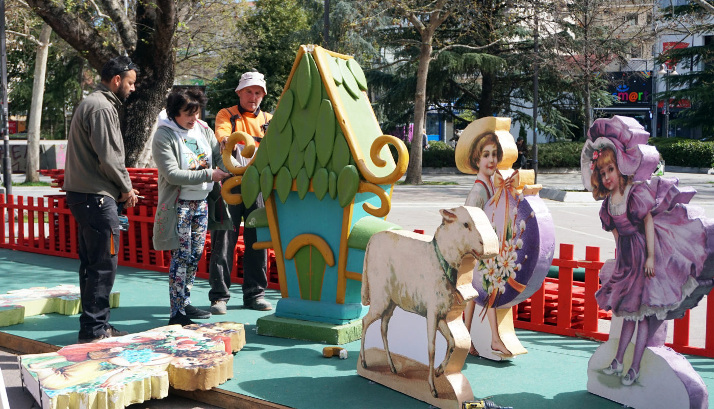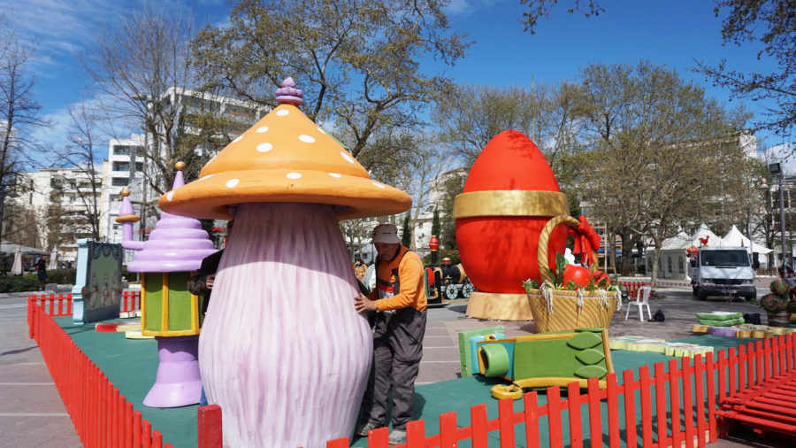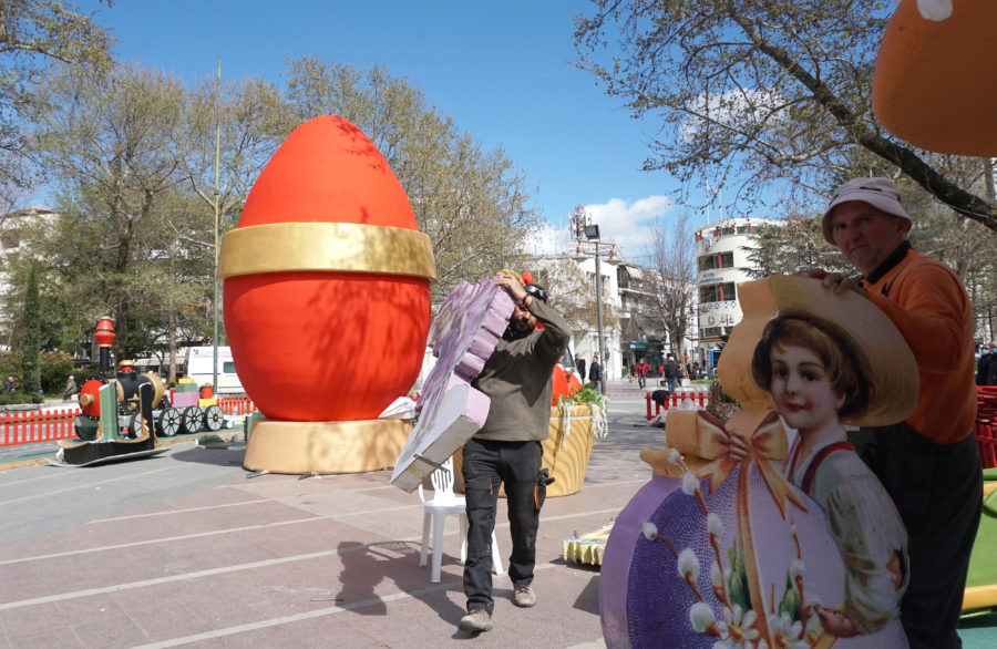 Ένα μικρό πασχαλινό χωριό, με εποχικές κατασκευές και σκηνικά, στήνεται στην Κεντρική Πλατεία της Λάρισας για να προετοιμάσει το κλίμα ενόψει του Πάσχα.