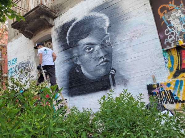 Το γκράφιτι έγινε στο μοιραίο εγκαταλειμμένο οίκημα, στη συμβολή των οδών Οικονόμου εξ Οικονόμων και Ασκληπιού. Εκεί όπου στις 20 Φεβρουαρίου κόπηκε τόσο πρόωρα και άδοξα το νήμα της ζωής ενός ανθρώπου γεμάτου ζωή.