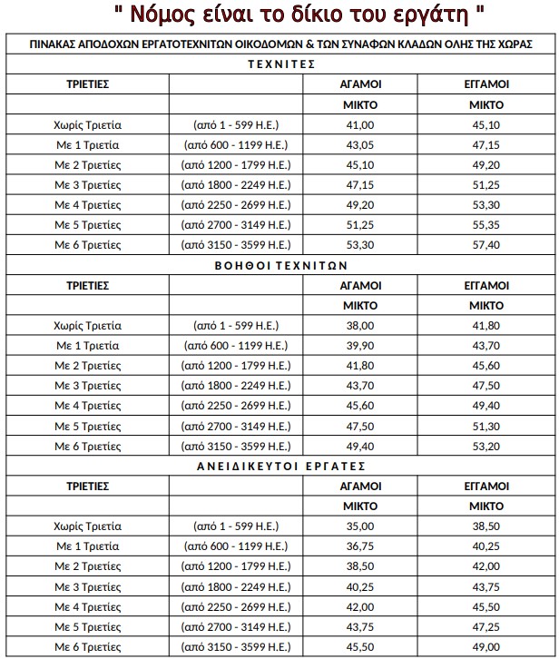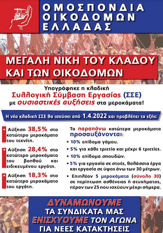 Σωματείο Εργατοτεχνιτών Οικοδόμων Επαρχίας Ελασσόνας: Υπογράφηκε η κλαδική Συλλογική Σύμβαση Εργασίας των οικοδόμων με ουσιαστικές αυξήσεις στα μεροκάματα