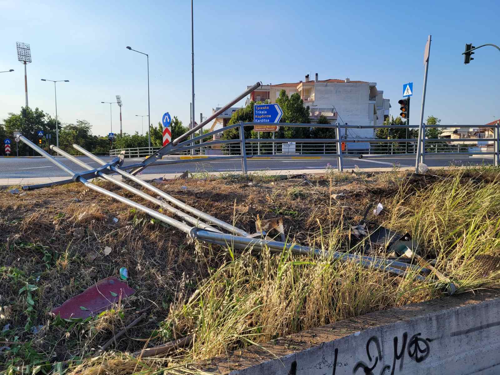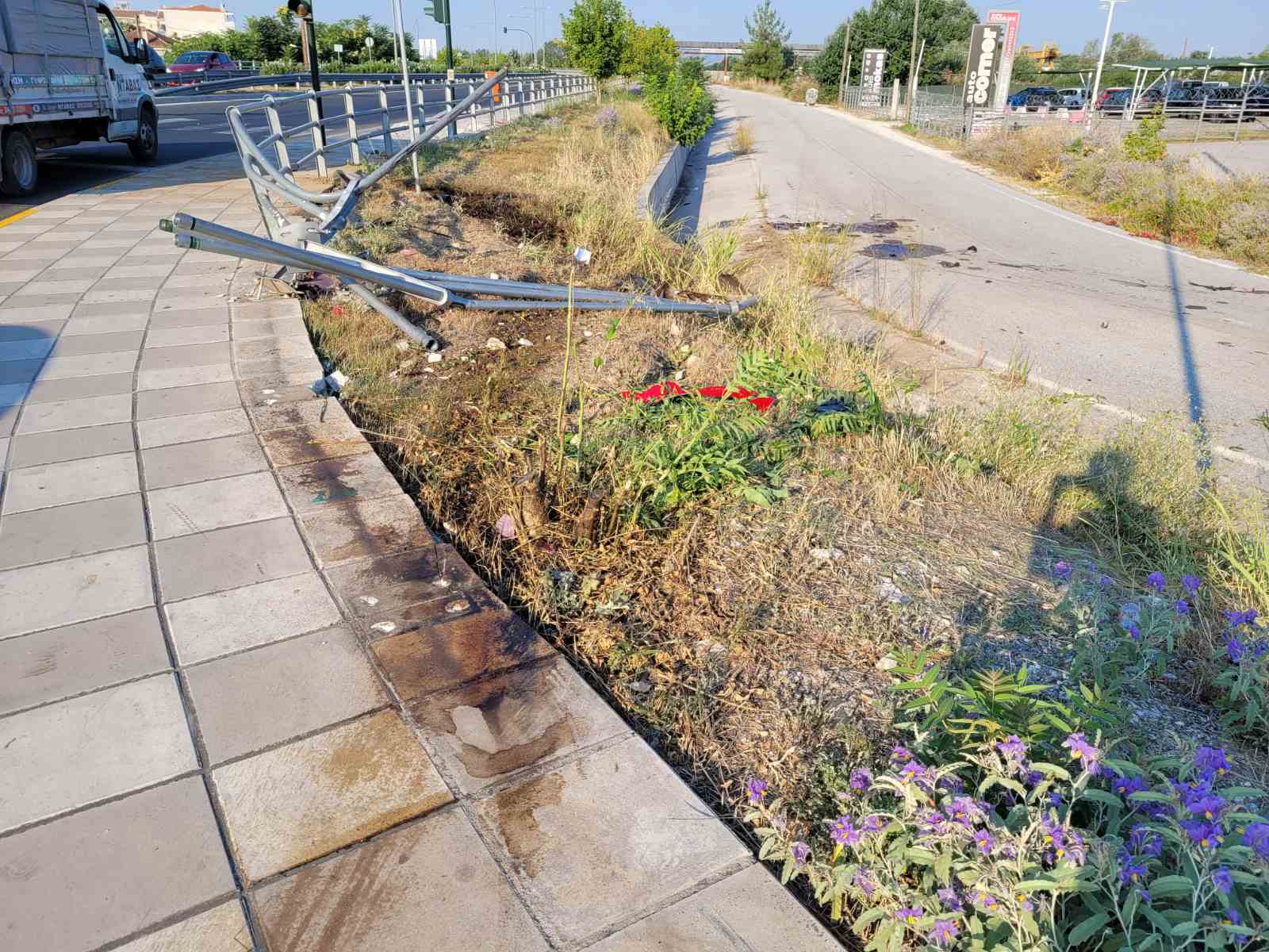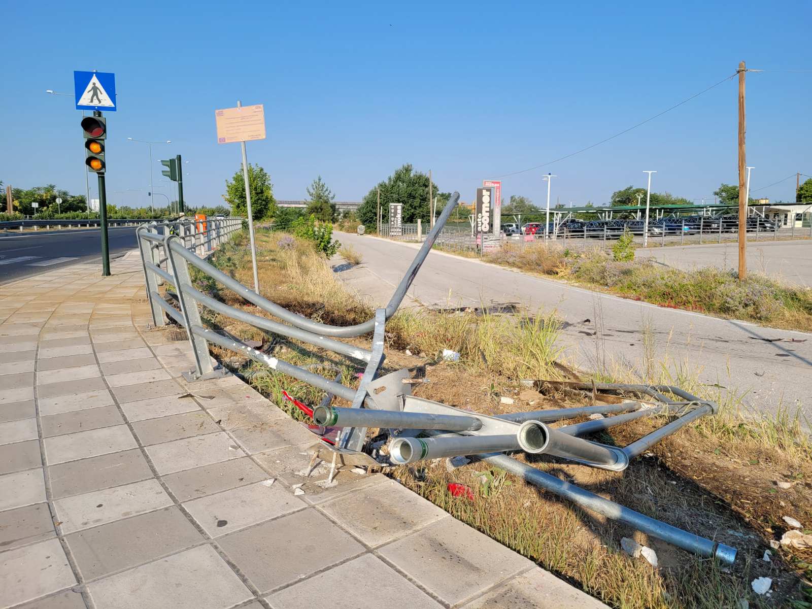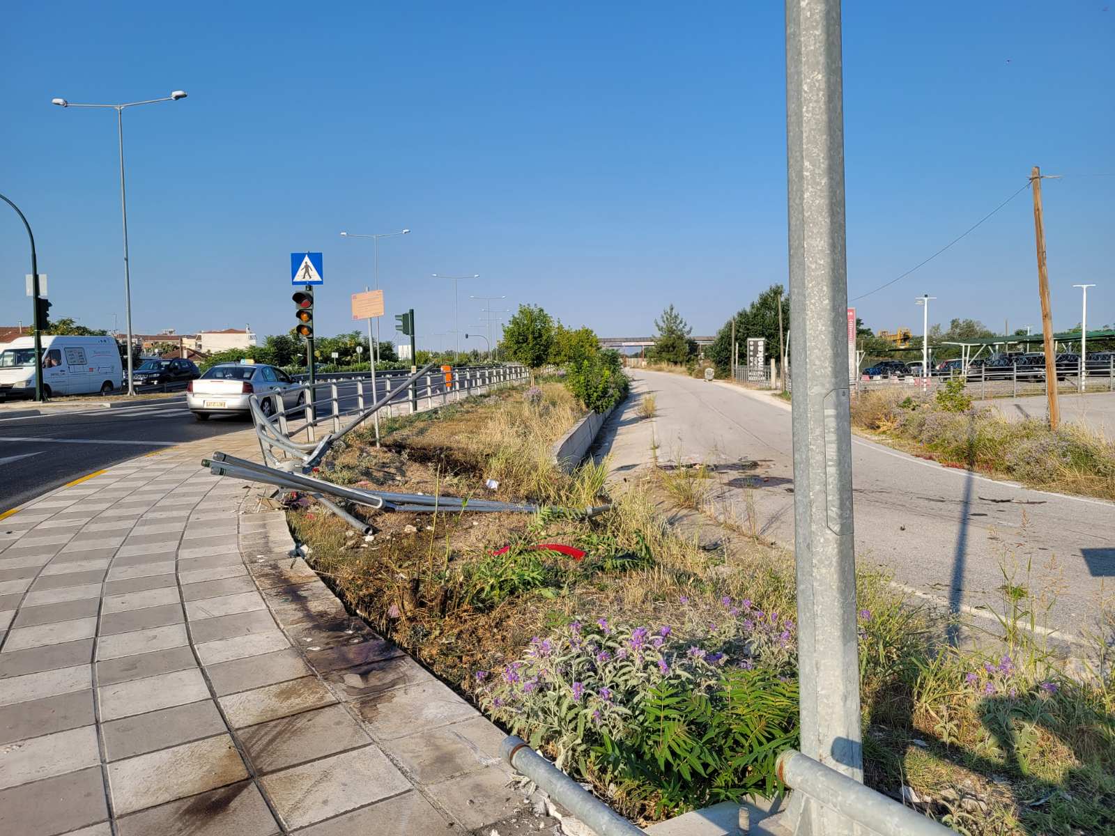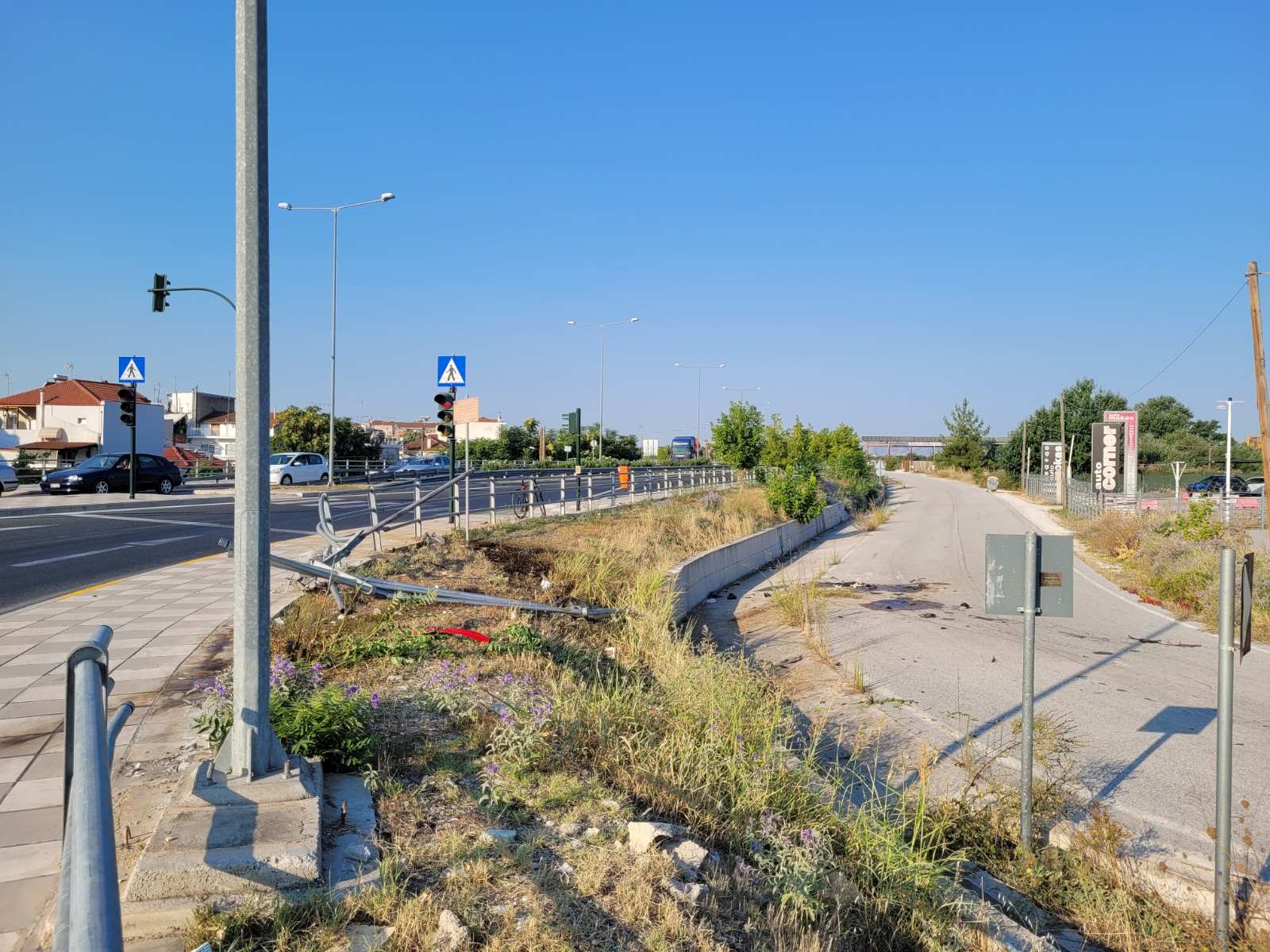 Ένας 53χρονος που επέβαινε στο αυτοκίνητό του με την 17χρονη κόρη του προσέκρουσε πάνω στα κιγκλιδώματα στον κόμβο της Γιάννουλης στο ύψος της μάνδρας αυτοκινήτων Auto Mokas.