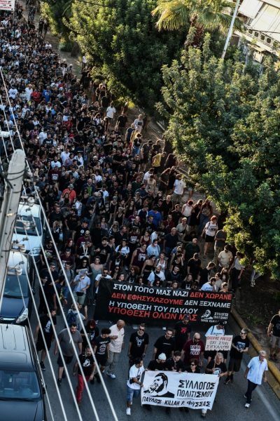 «Ο Παύλος ζει, τσακίστε τους ναζί», «Ποτέ ξανά φασισμός», «Και τώρα και πάντα και όπως το ’40, τη φτώχια και το φασισμό θα πολεμάμε πάντα», ήταν τα συνθήματα που δονούσαν τον αέρα.