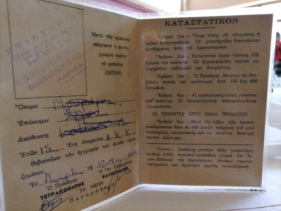 Η χιουμοριστική του διάθεση και η τάση του για πείραγμα, δεν τον εγκατέλειψε ποτέ: Οι παλαιότεροι οπαδοί του «Έλατου», ίσως να θυμούνται ότι η παραμονή στο μαγαζί για αρκετές ώρες, είχε ως προϋπόθεση την κατοχή του «δελτίου κρασοκαταναλώσεως», υπογεγραμμένο από συγκεκριμένα πρόσωπα της οικογένειας!