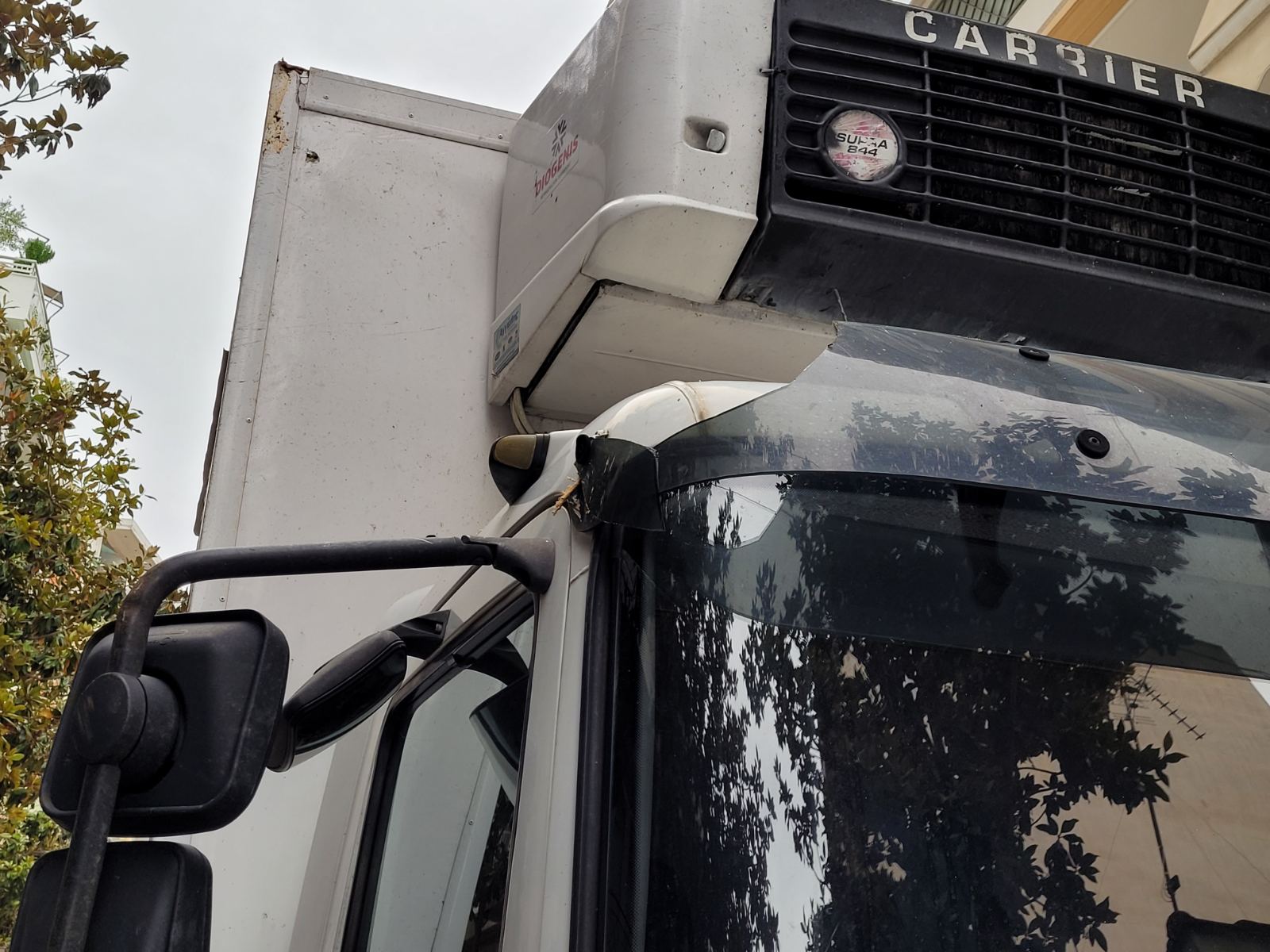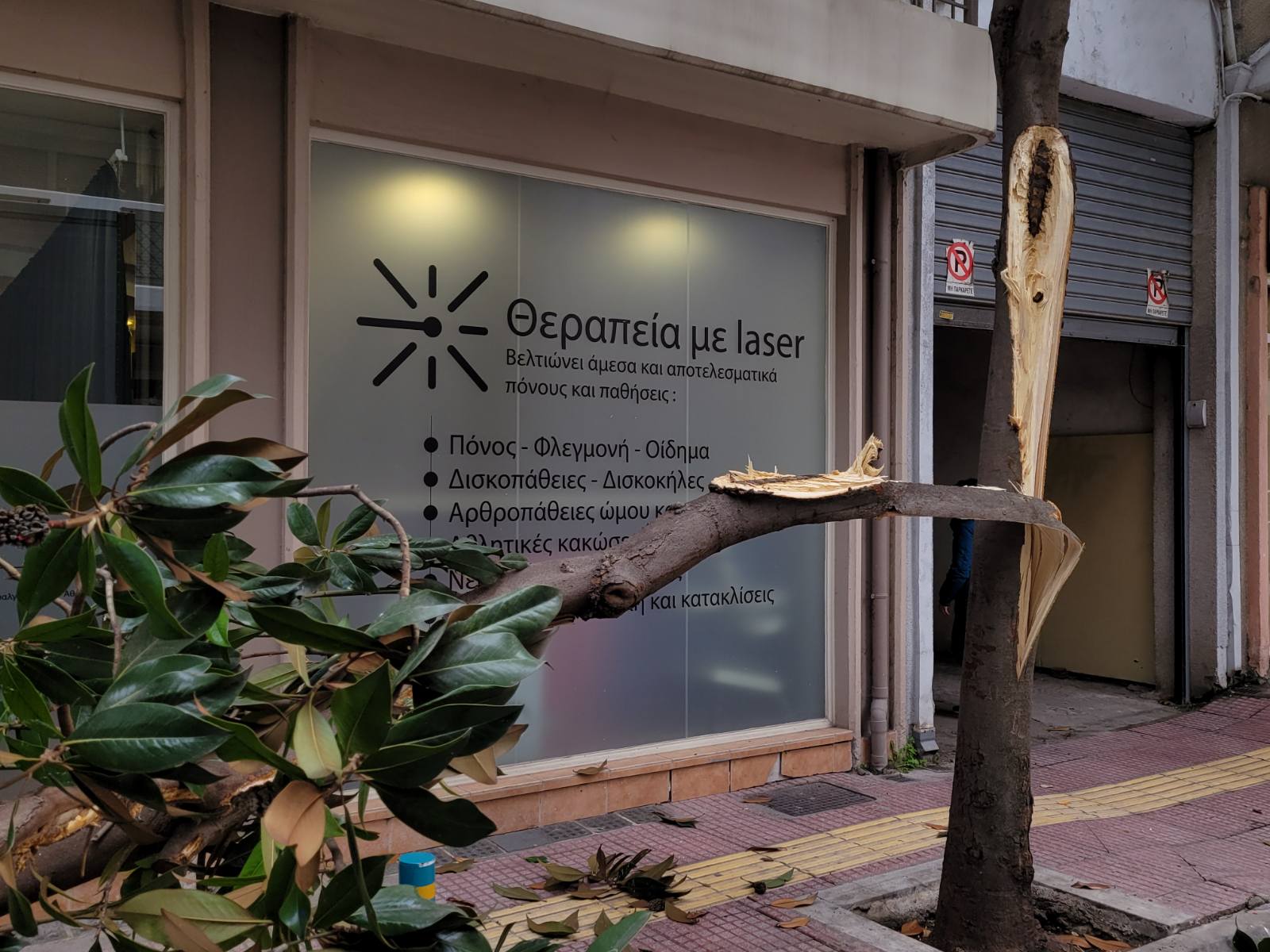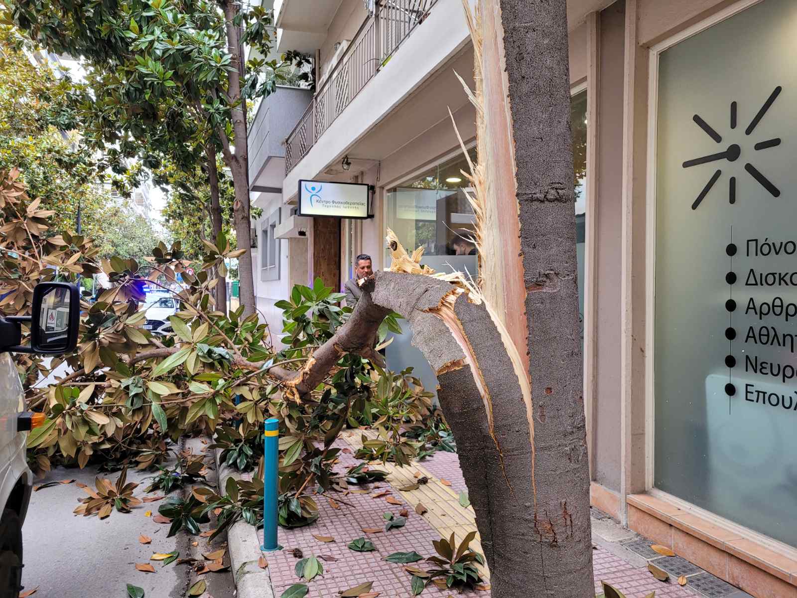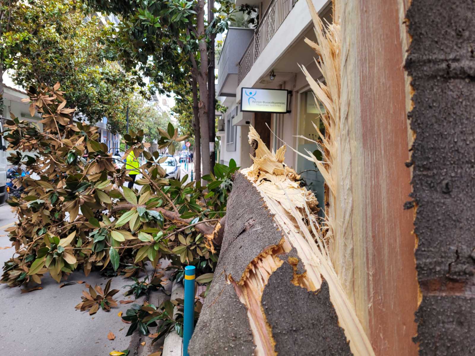 Φορτηγό διερχόμενο από τον συγκεκριμένο δρόμο δυσκολευόταν να περάσει καθώς ένα άλλο βαρύ όχημα ήταν διπλοπαρκαρισμένο στο σημείο, με αποτέλεσμα το πρώτο φορτηγό να «ξηλώσει» το μισό δέντρο που βρίσκεται στο πεζοδρόμιο και αυτό να… σκορπίσει στο οδόστρωμα.