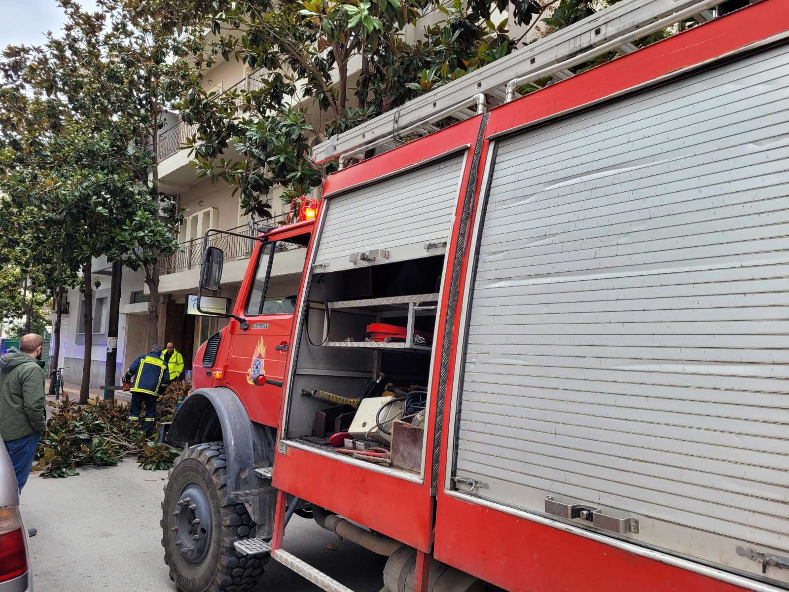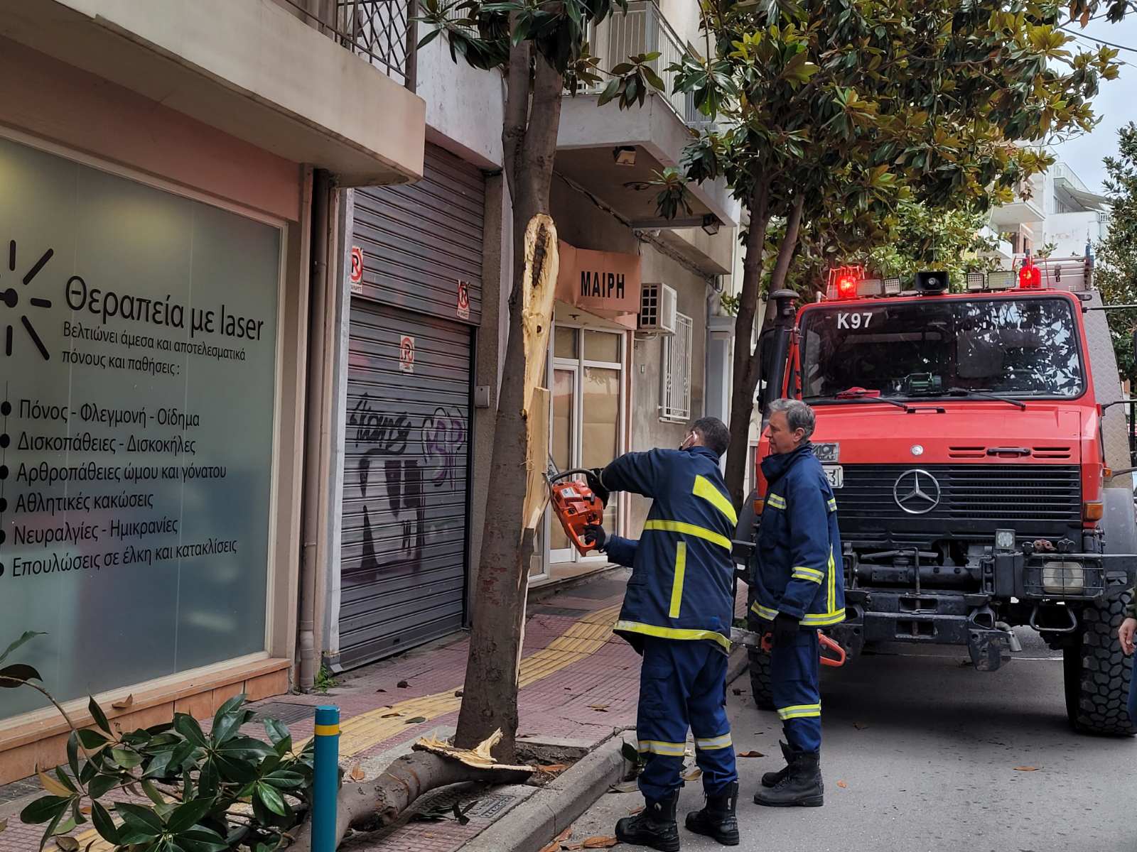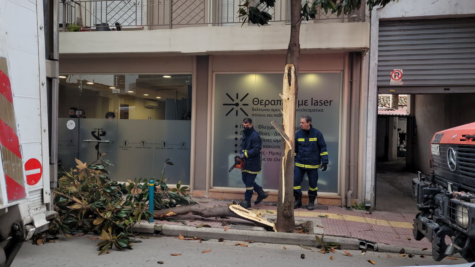Στο σημείο έσπευσε η Πυροσβεστική με ένα όχημα και δύο άνδρες οι οποίοι έκοψαν το κομμάτι αυτό του δέντρου και καθάρισαν τον δρόμο.