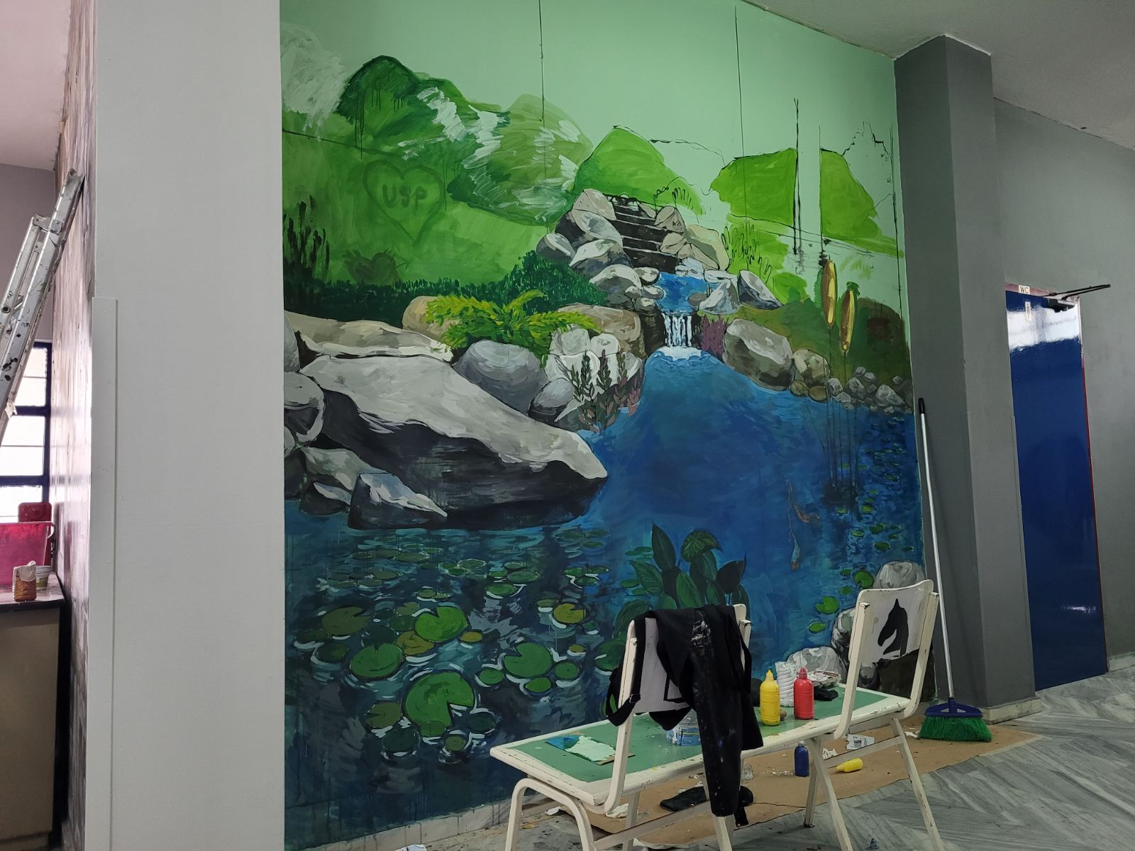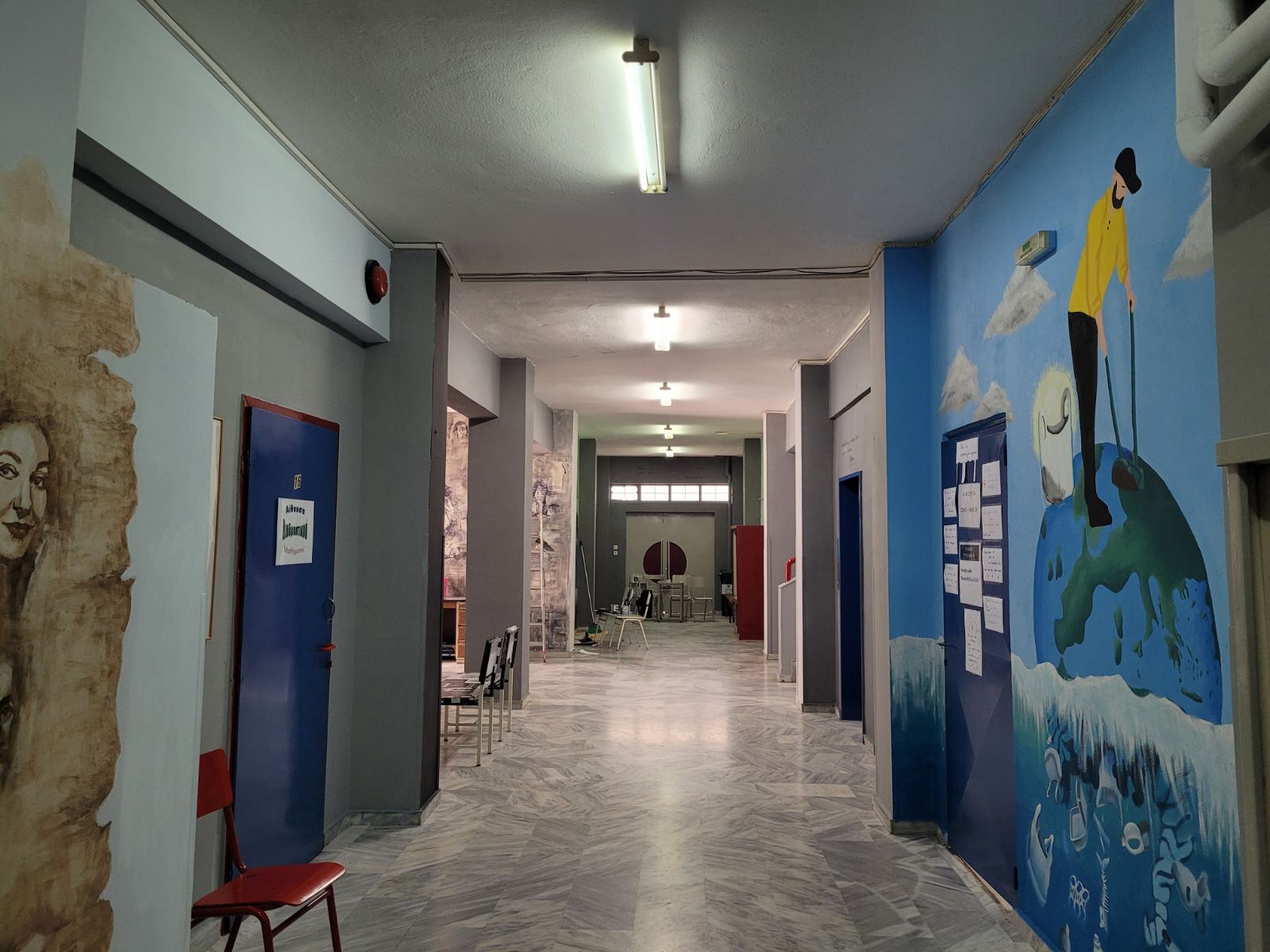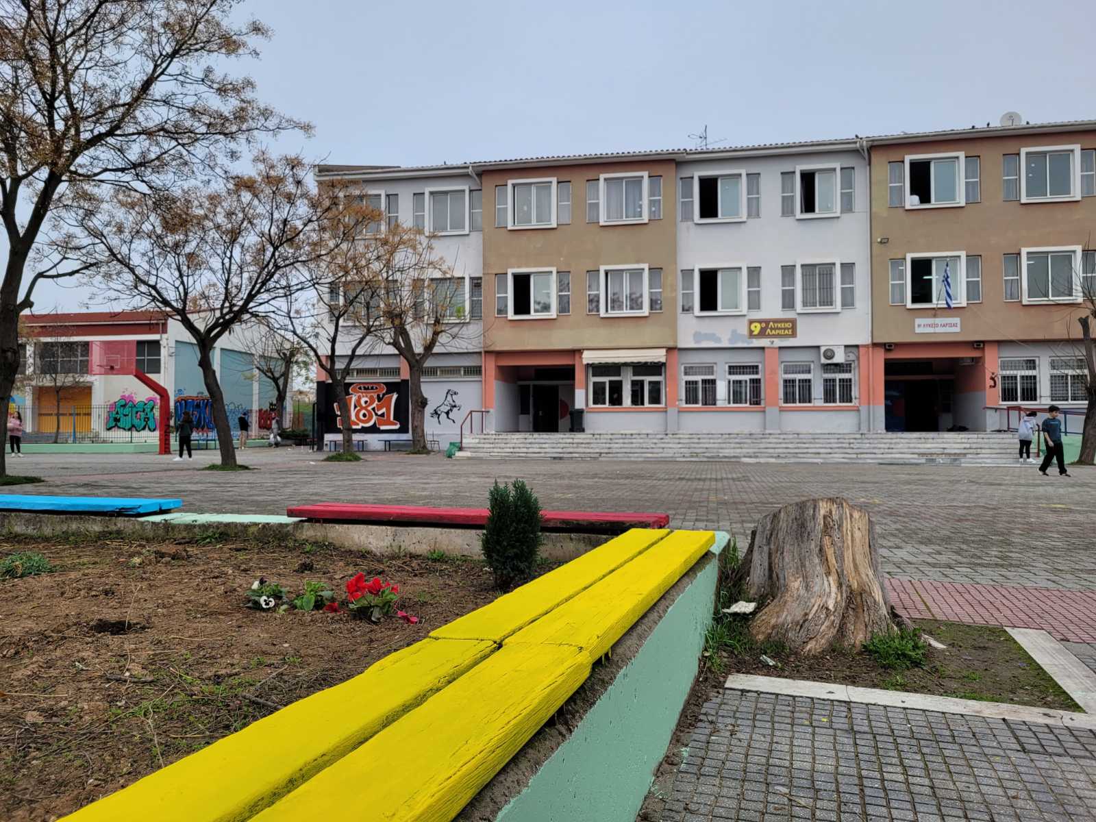 Ήταν αρχές του περασμένου Οκτωβρίου όταν μαθητές του 9ου Λυκείου Λάρισας που εδρεύει στην περιοχή του ΑΤΑ υπό την καθοδήγηση πέντε καθηγητών τους, συγκεντρώθηκαν, «έριξαν» τις ιδέες στο τραπέζι, και πιάνοντας πινέλα και χρώματα άρχισαν να τις υλοποιούν στους τοίχους των διαδρόμων του σχολείου.
