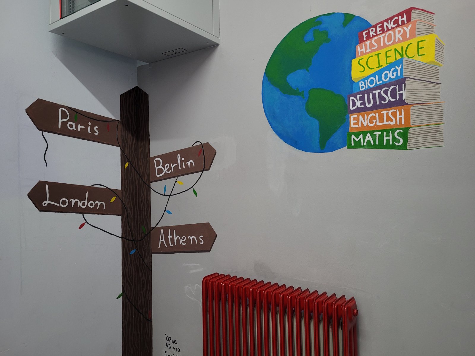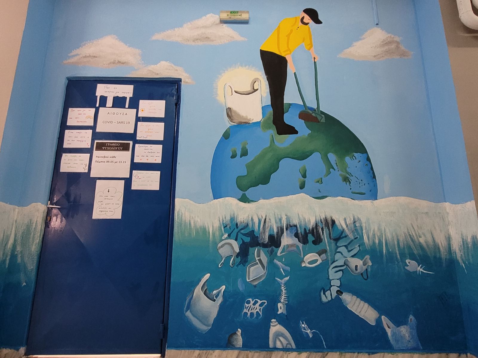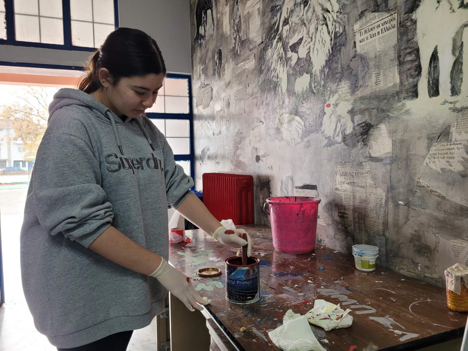 Ήταν αρχές του περασμένου Οκτωβρίου όταν μαθητές του 9ου Λυκείου Λάρισας που εδρεύει στην περιοχή του ΑΤΑ υπό την καθοδήγηση πέντε καθηγητών τους, συγκεντρώθηκαν, «έριξαν» τις ιδέες στο τραπέζι, και πιάνοντας πινέλα και χρώματα άρχισαν να τις υλοποιούν στους τοίχους των διαδρόμων του σχολείου.
