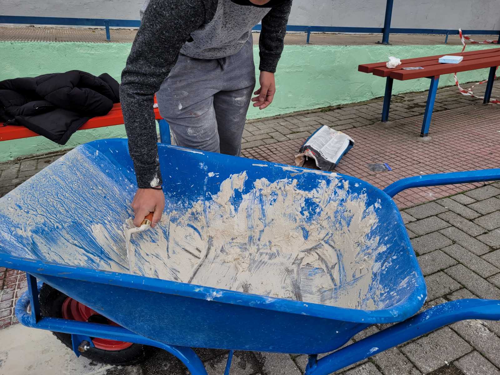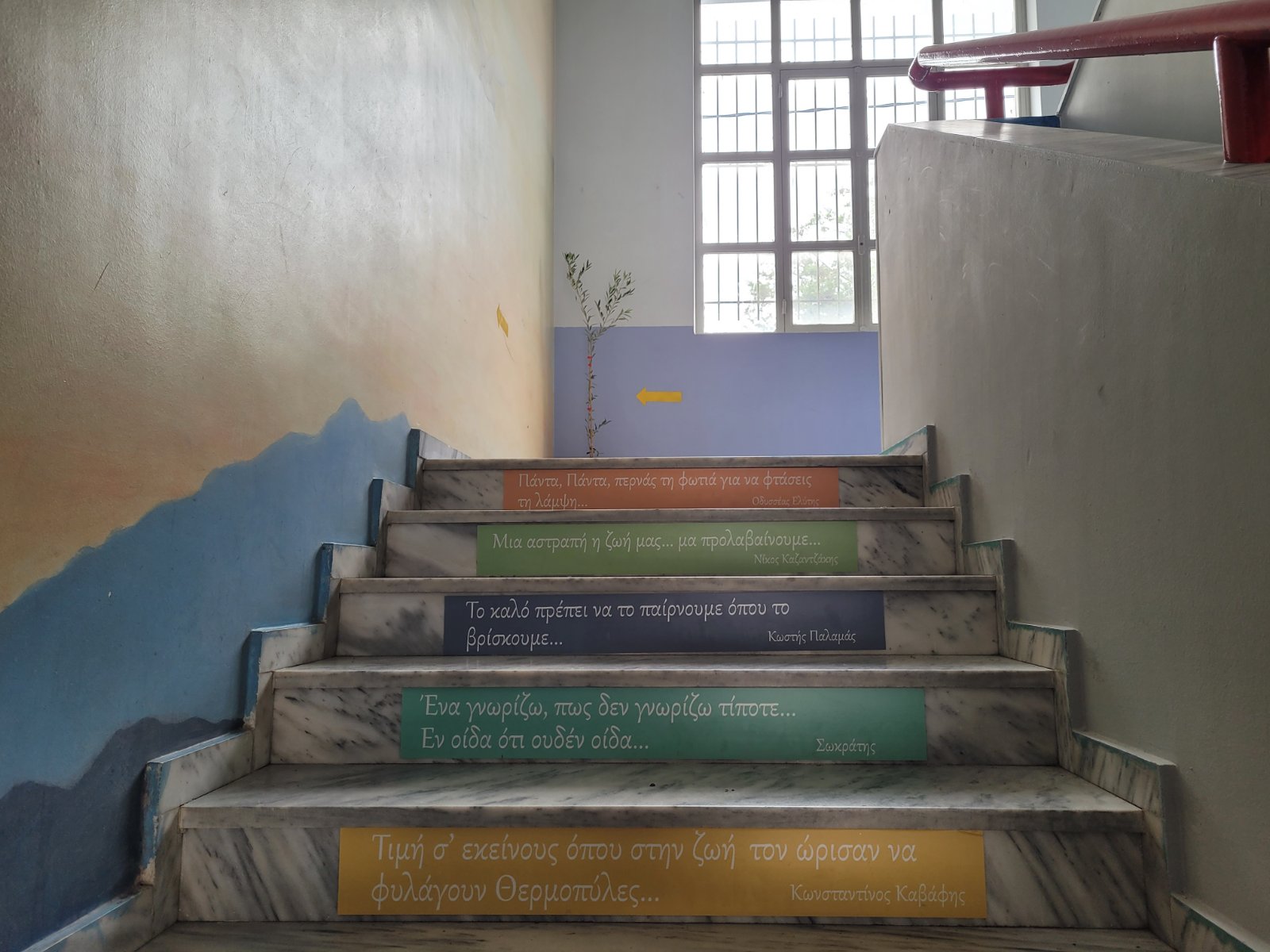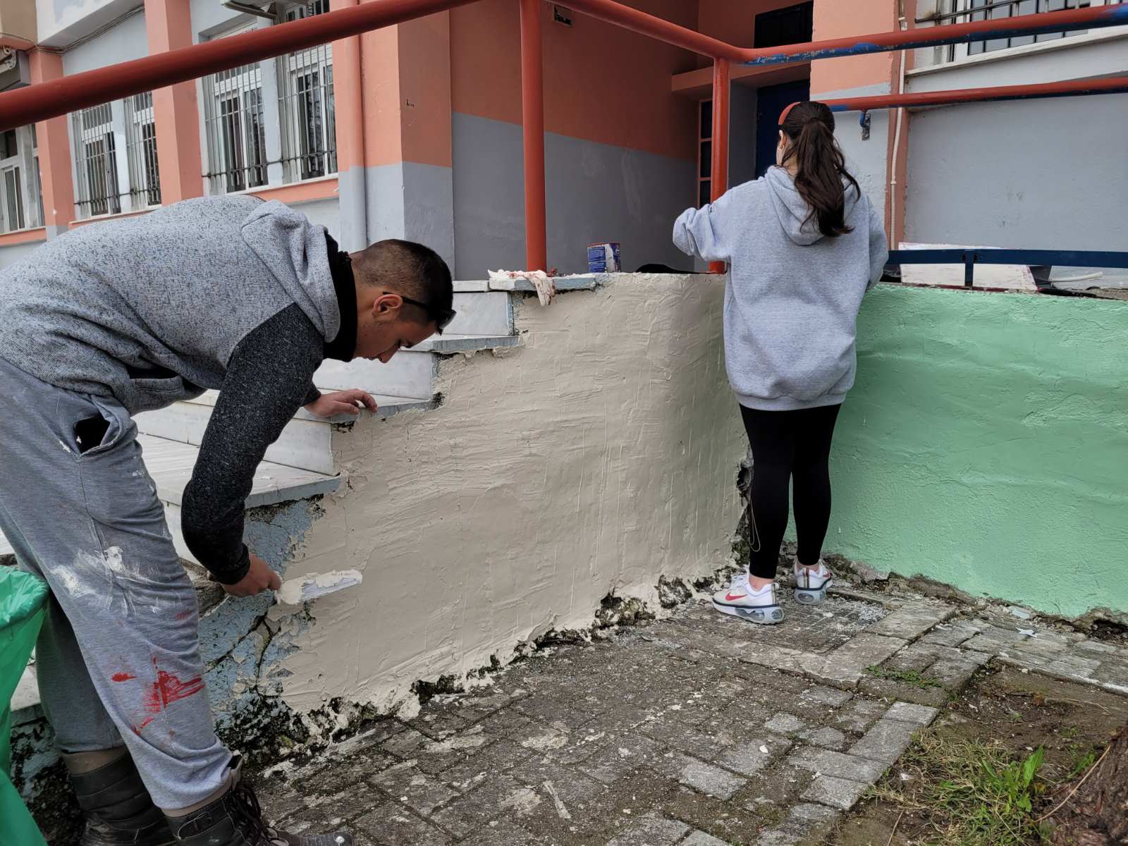 Οι καλλιτεχνικές παρεμβάσεις στο εσωτερικό του κτιρίου αναμένεται να ολοκληρωθούν το νέο χρόνο με την αποτύπωση του πίνακα «Έναστρος Ουρανός» του Βίνσεντ βαν Γκογκ, ενώ μέχρι στιγμής παρεμβάσεις συνεχίζονται στο εξωτερικό του με βάψιμο πεζουλιών, παγκακιών, κάγκελων μέχρι και… σοβάτισμα τοίχων. Σοβάτισμα που διαφέρει αφού το έχει αναλάβει αποκλειστικά ένας 17χρονος, χρησιμοποιώντας σαν δεξιοτέχνης τα παραδοσιακά εργαλεία, μυστρί και σπάτουλα.