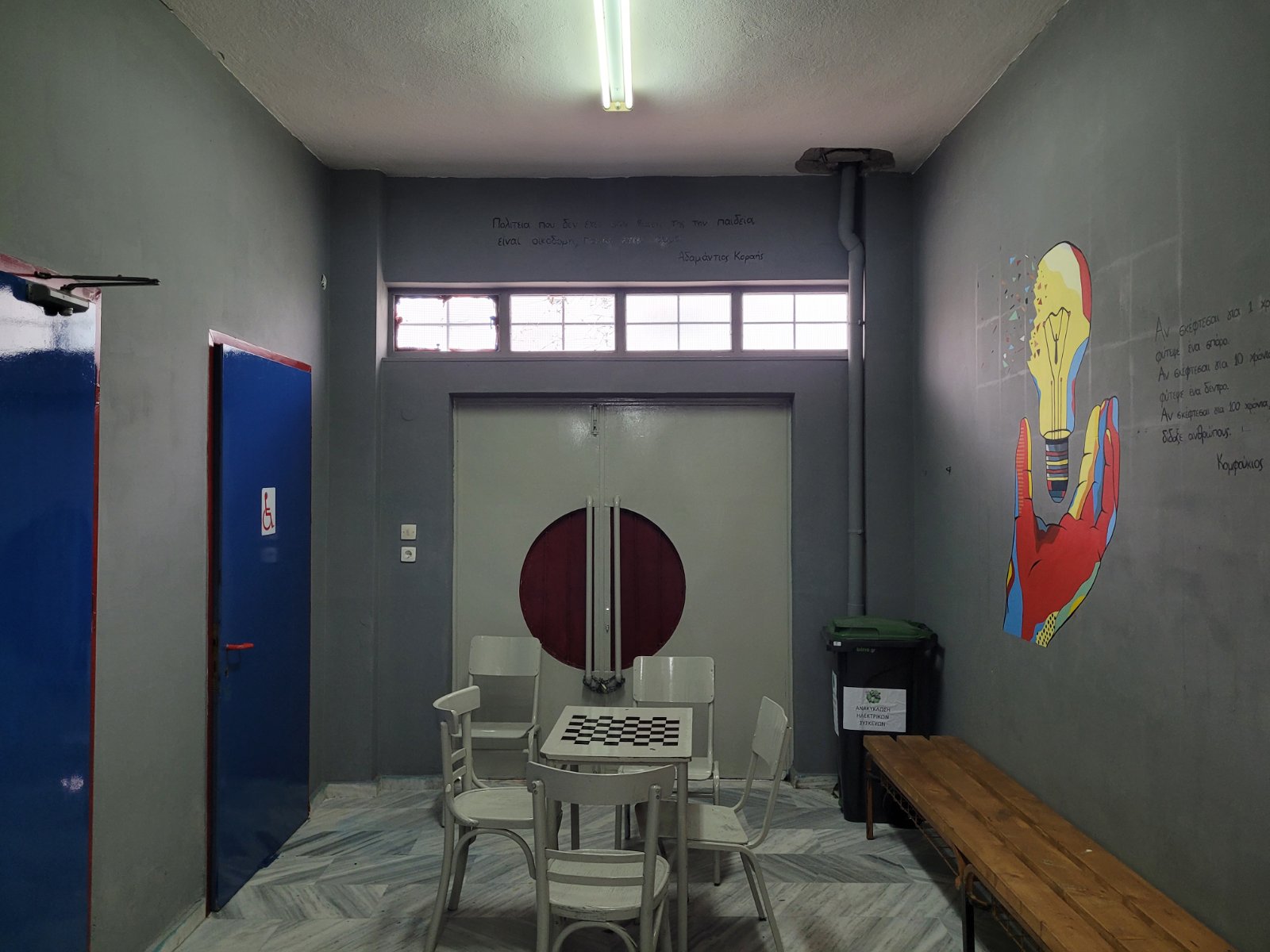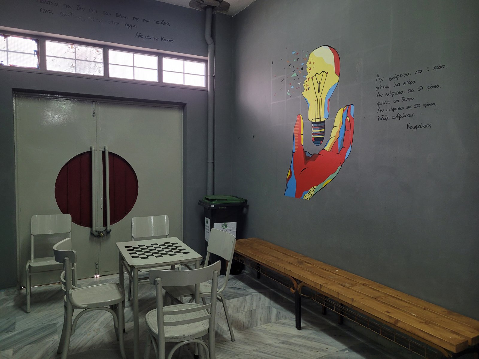 Συμπληρωματικά με τα ανωτέρω έγινε μια προσπάθεια ταξικής αναδιαμόρφωσης του ισογείου, όπου δόθηκε χώρος για τη δημιουργία σκακιστικών τραπεζιών που μπορούν να ψυχαγωγούν τους μαθητευόμενους σε ημέρες με άσχημο καιρό αλλά και γενικότερα.