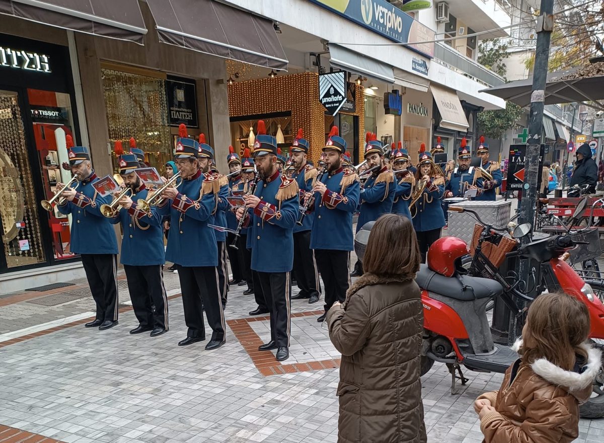 Με χριστουγεννιάτικες νότες “πλημμύρισε” το κέντρο της Λάρισας σήμερα το μεσημέρι παραμονή Πρωτοχρονιάς από την Φιλαρμονική του δήμου Λαρισαίων.