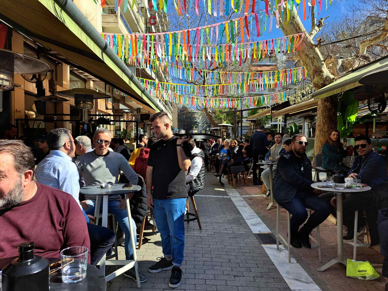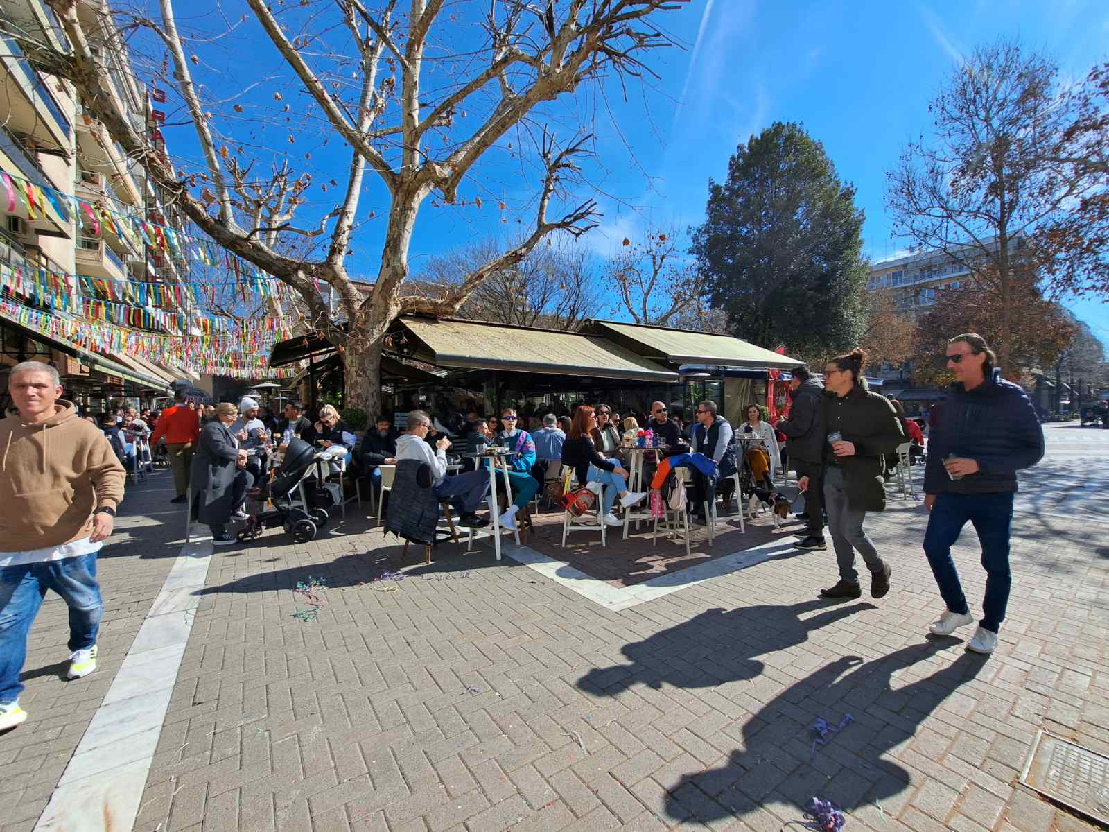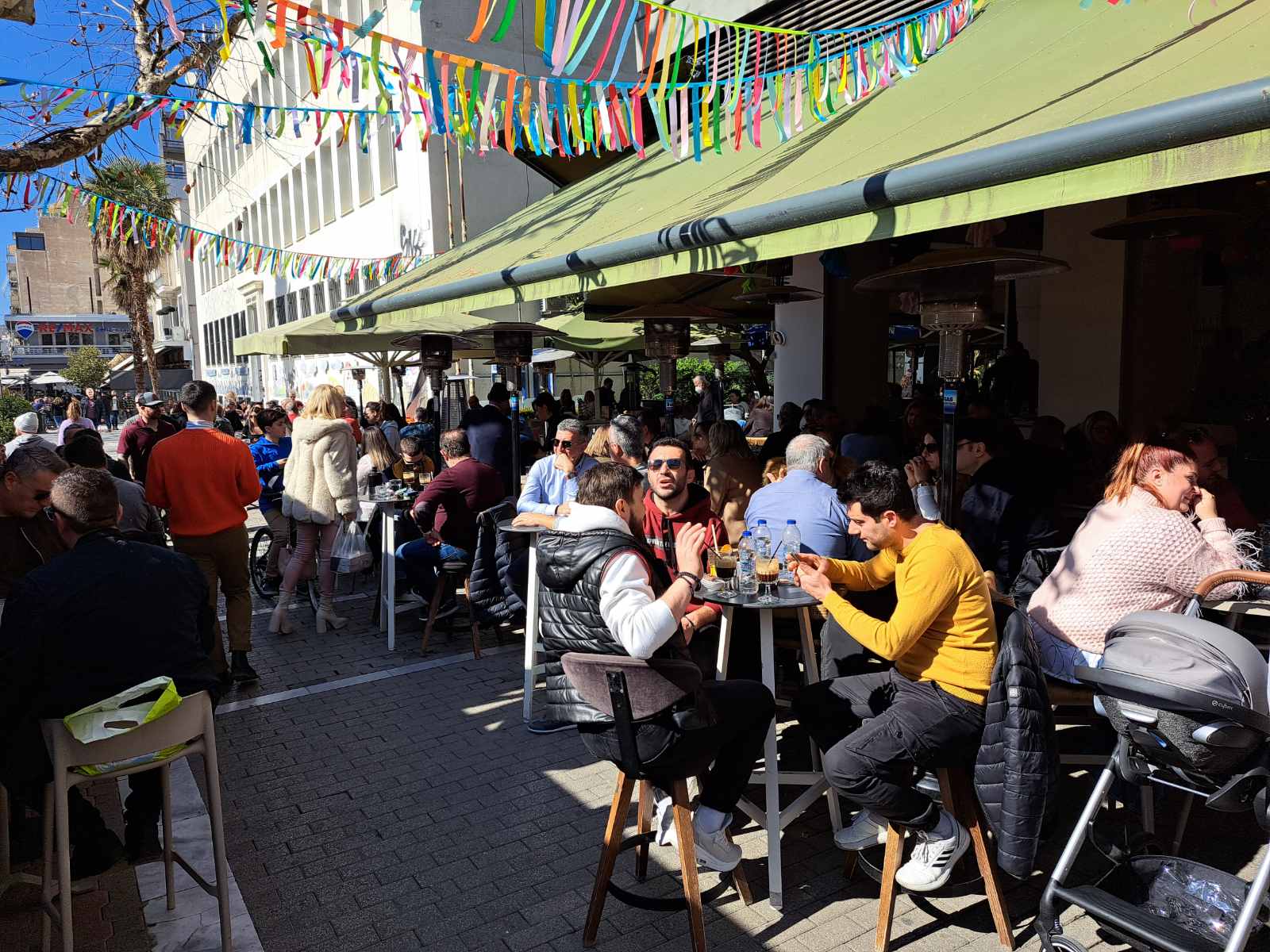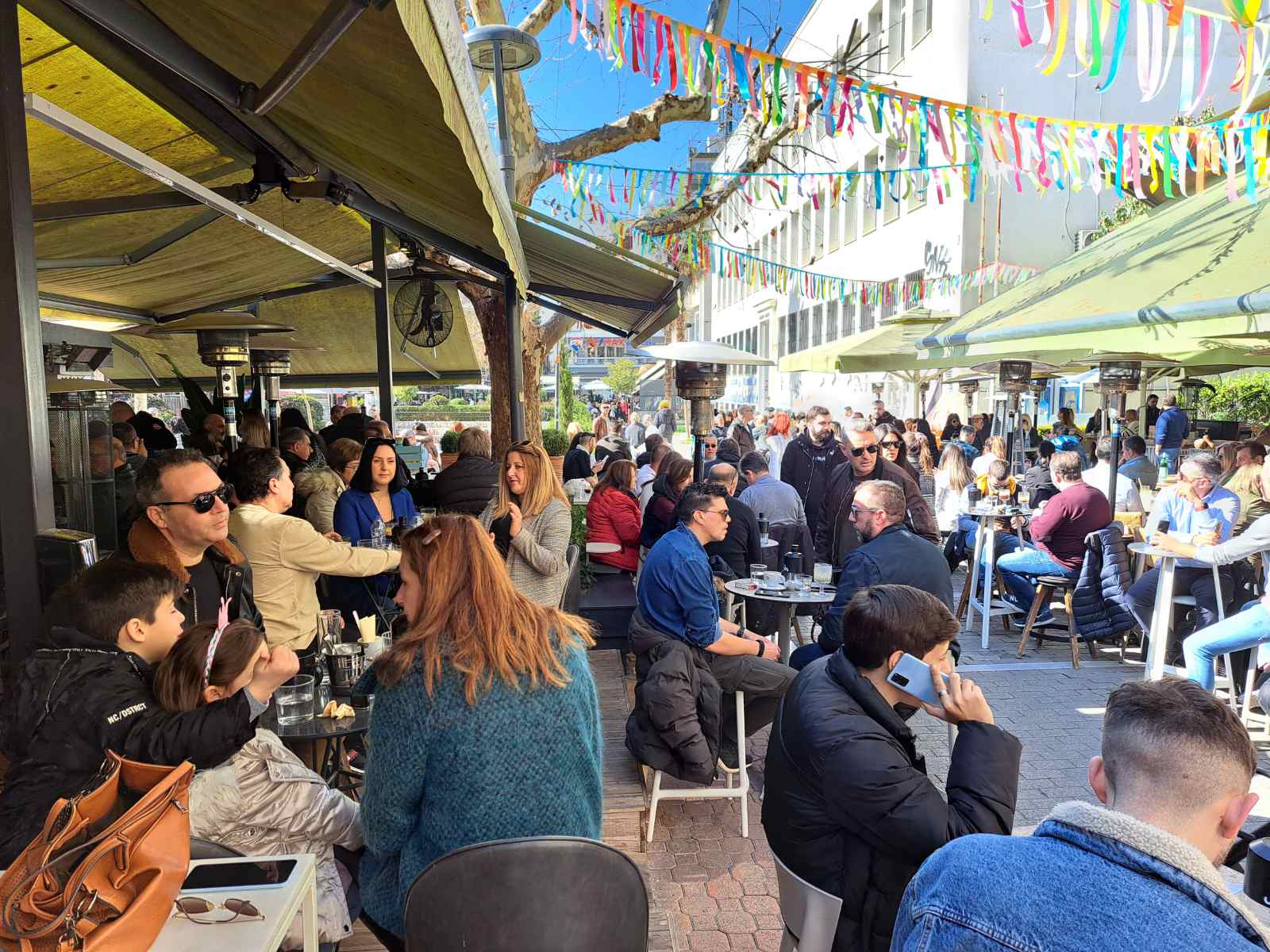 Οι καφετέριες «βούλιαξαν» από κόσμο καθώς δεν πέφτει «καρφίτσα» σε κεντρικούς πεζοδρόμους.