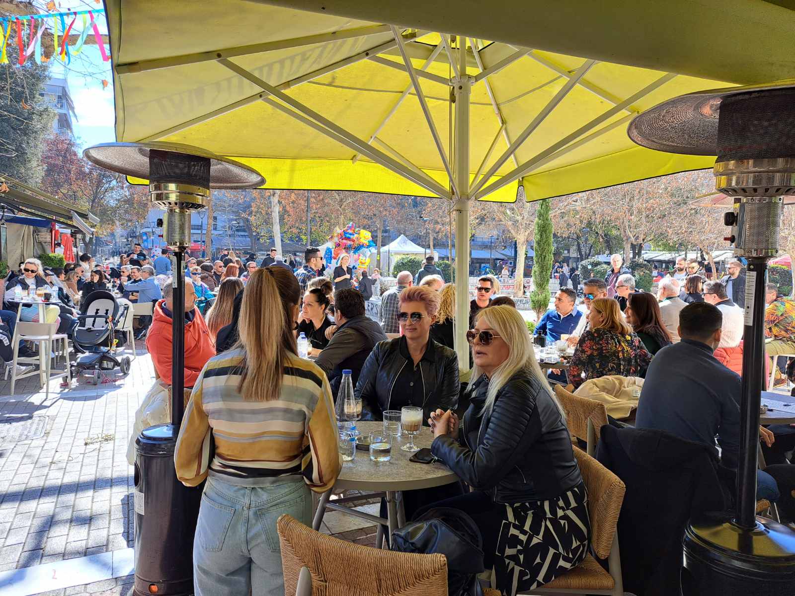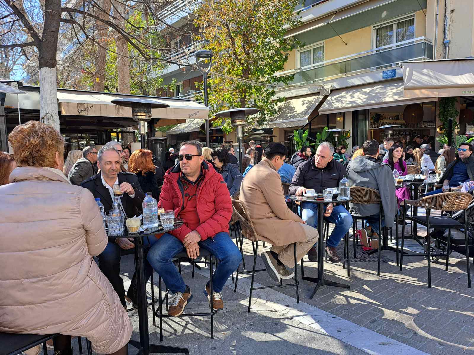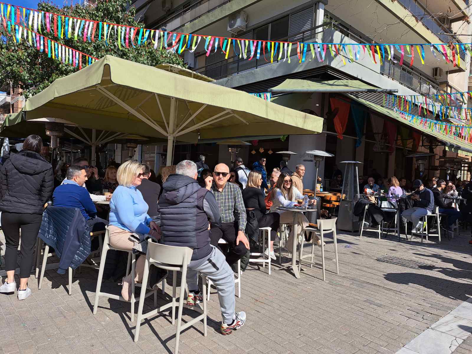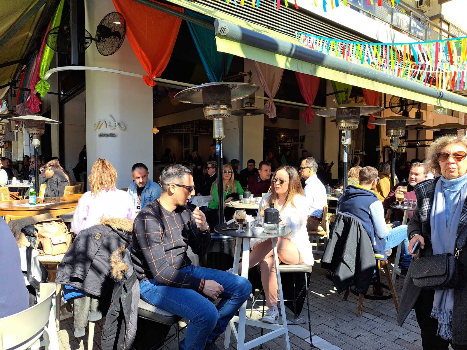 Οι καφετέριες «βούλιαξαν» από κόσμο καθώς δεν πέφτει «καρφίτσα» σε κεντρικούς πεζοδρόμους.