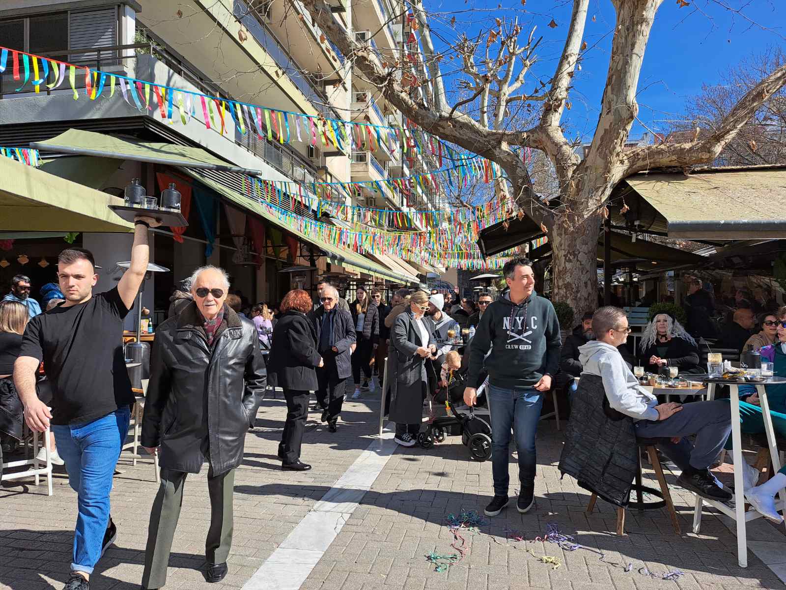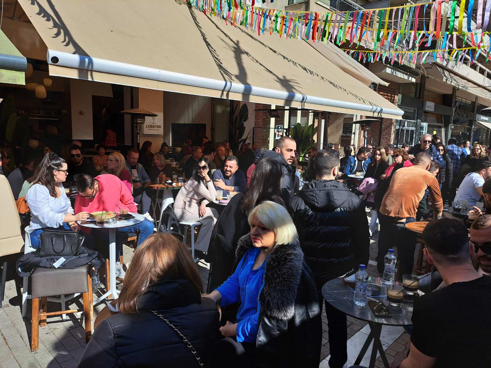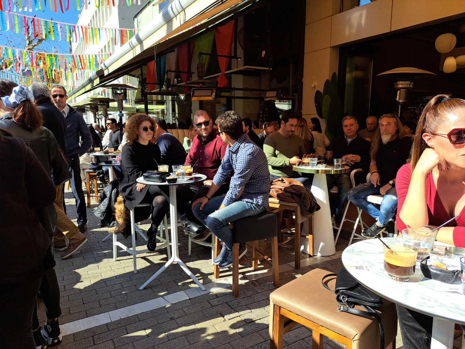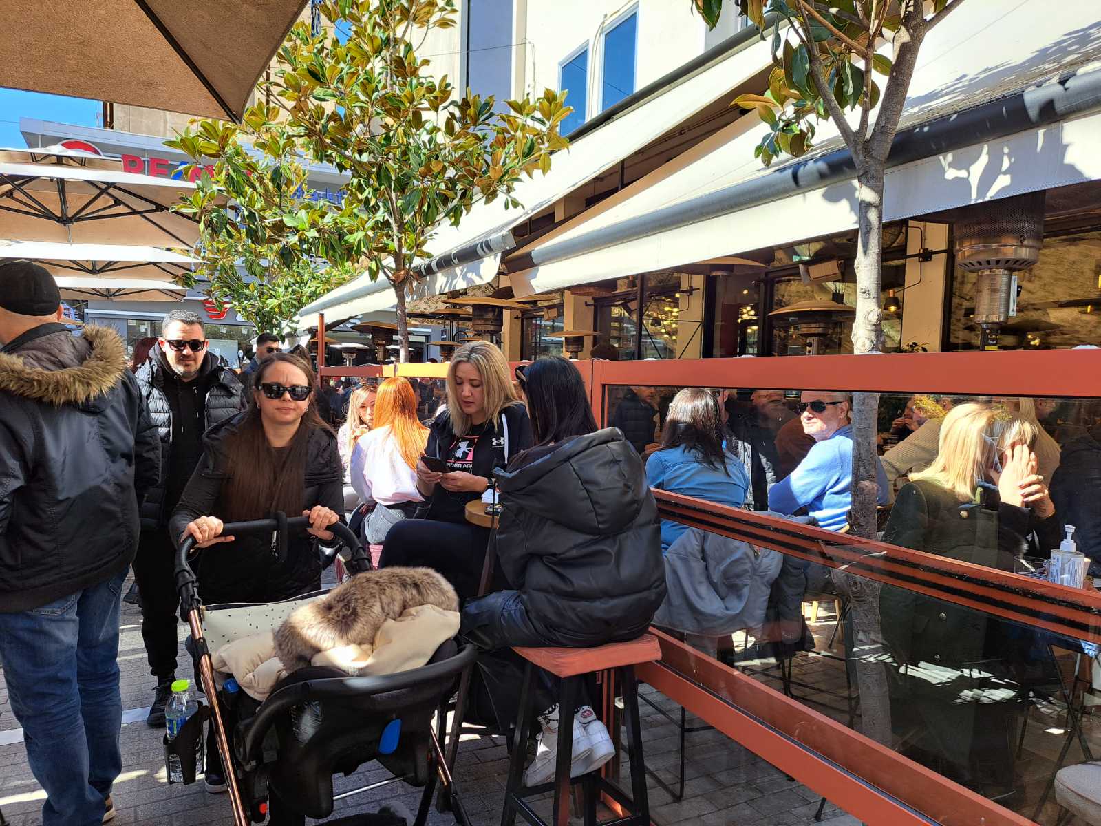 Οι καφετέριες «βούλιαξαν» από κόσμο καθώς δεν πέφτει «καρφίτσα» σε κεντρικούς πεζοδρόμους.