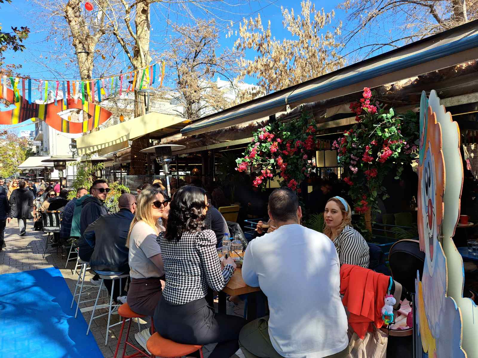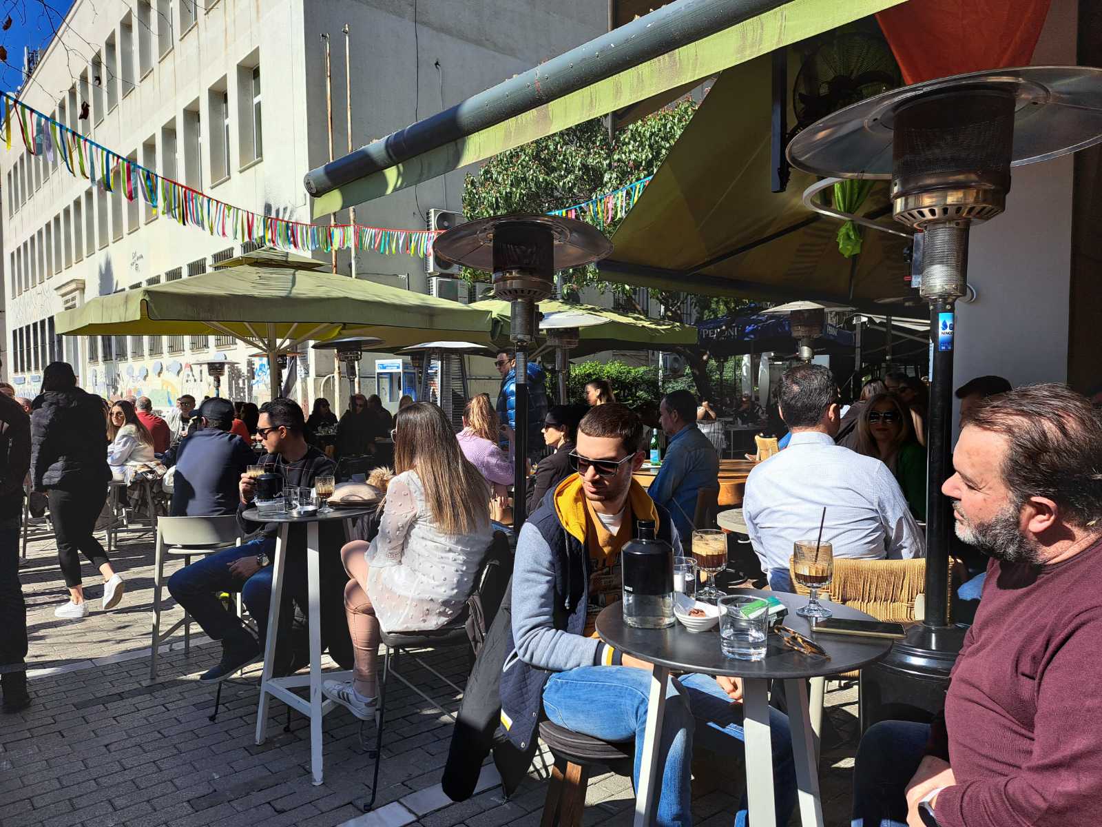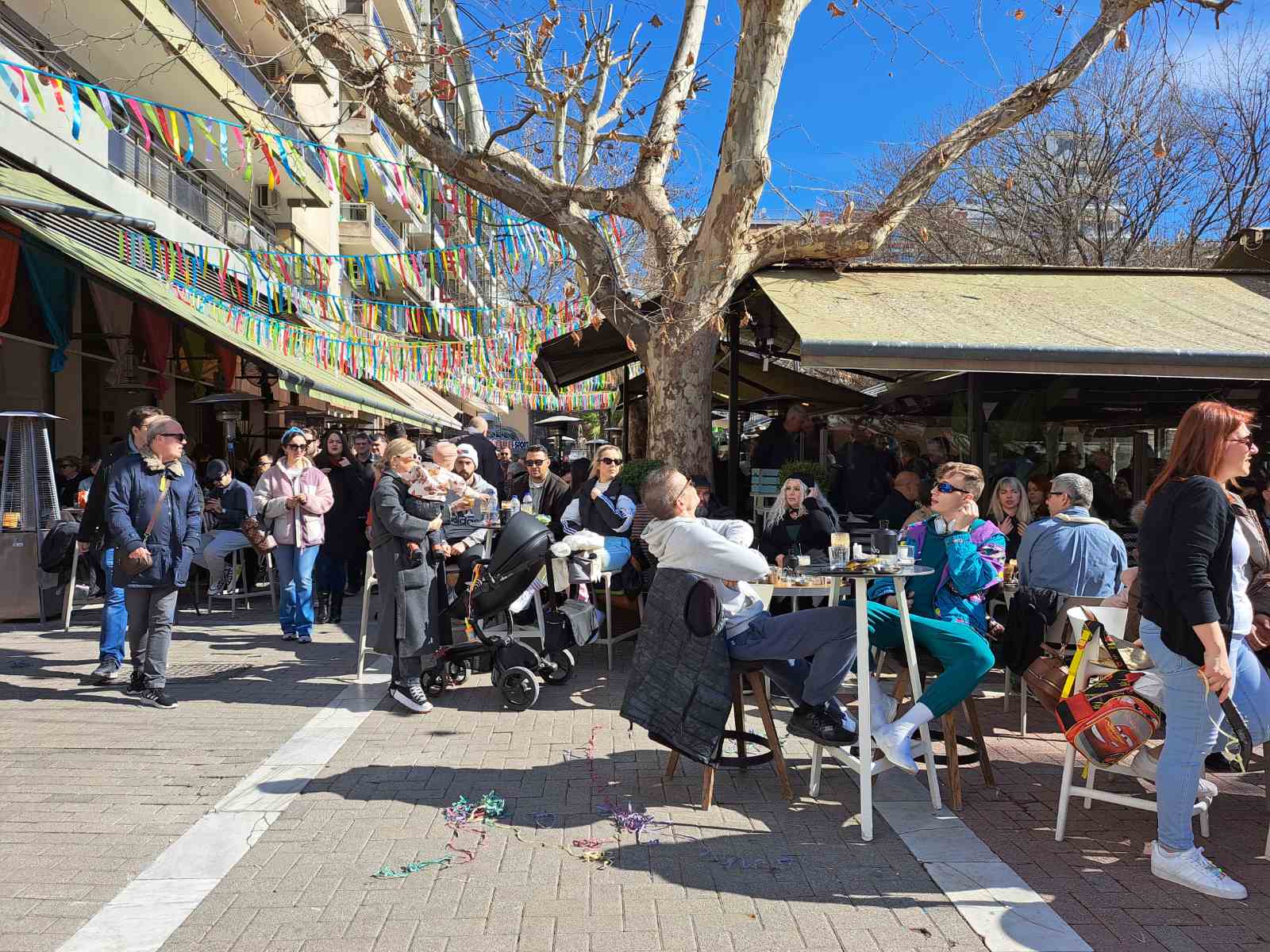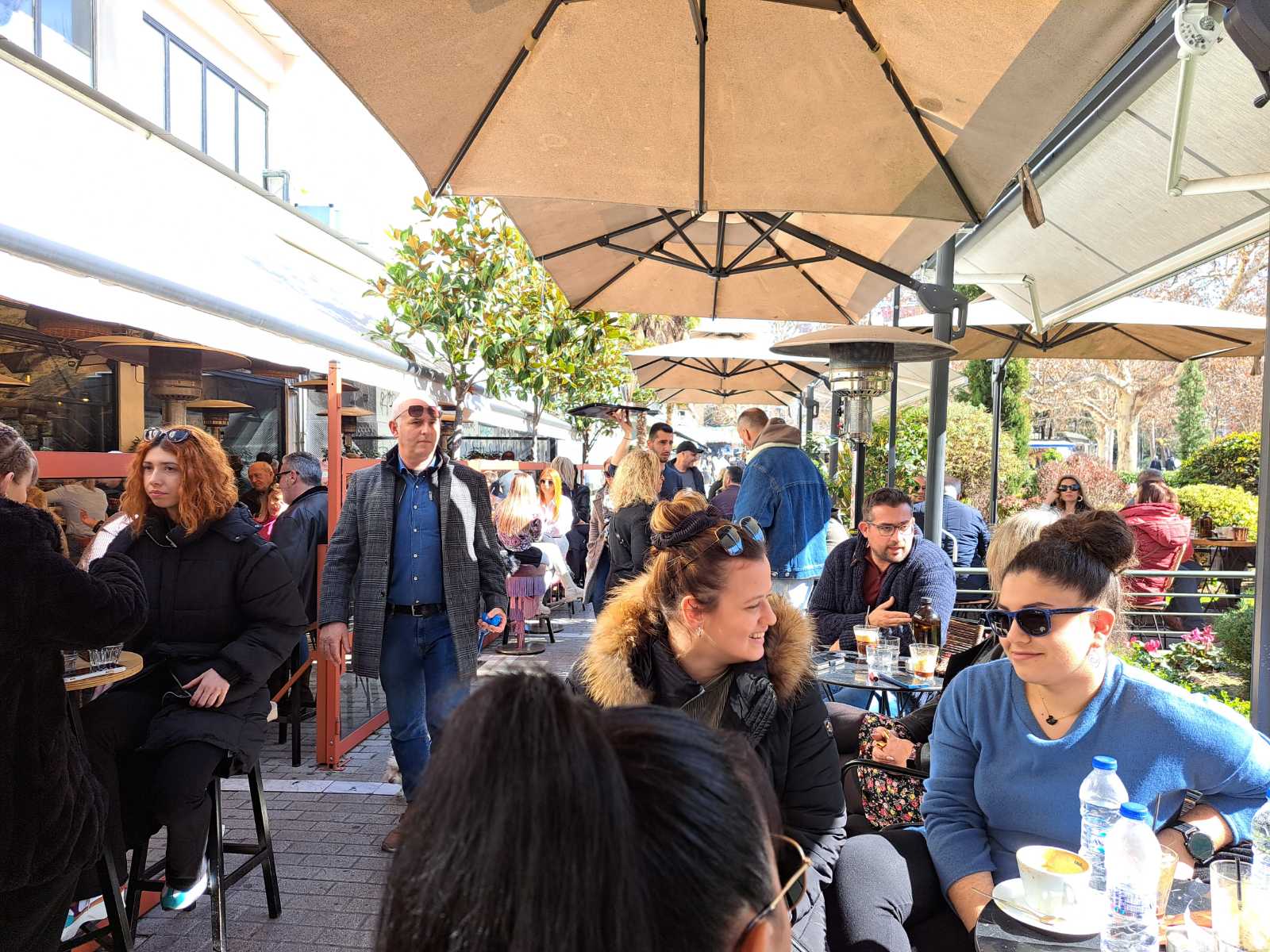 Οι καφετέριες «βούλιαξαν» από κόσμο καθώς δεν πέφτει «καρφίτσα» σε κεντρικούς πεζοδρόμους.