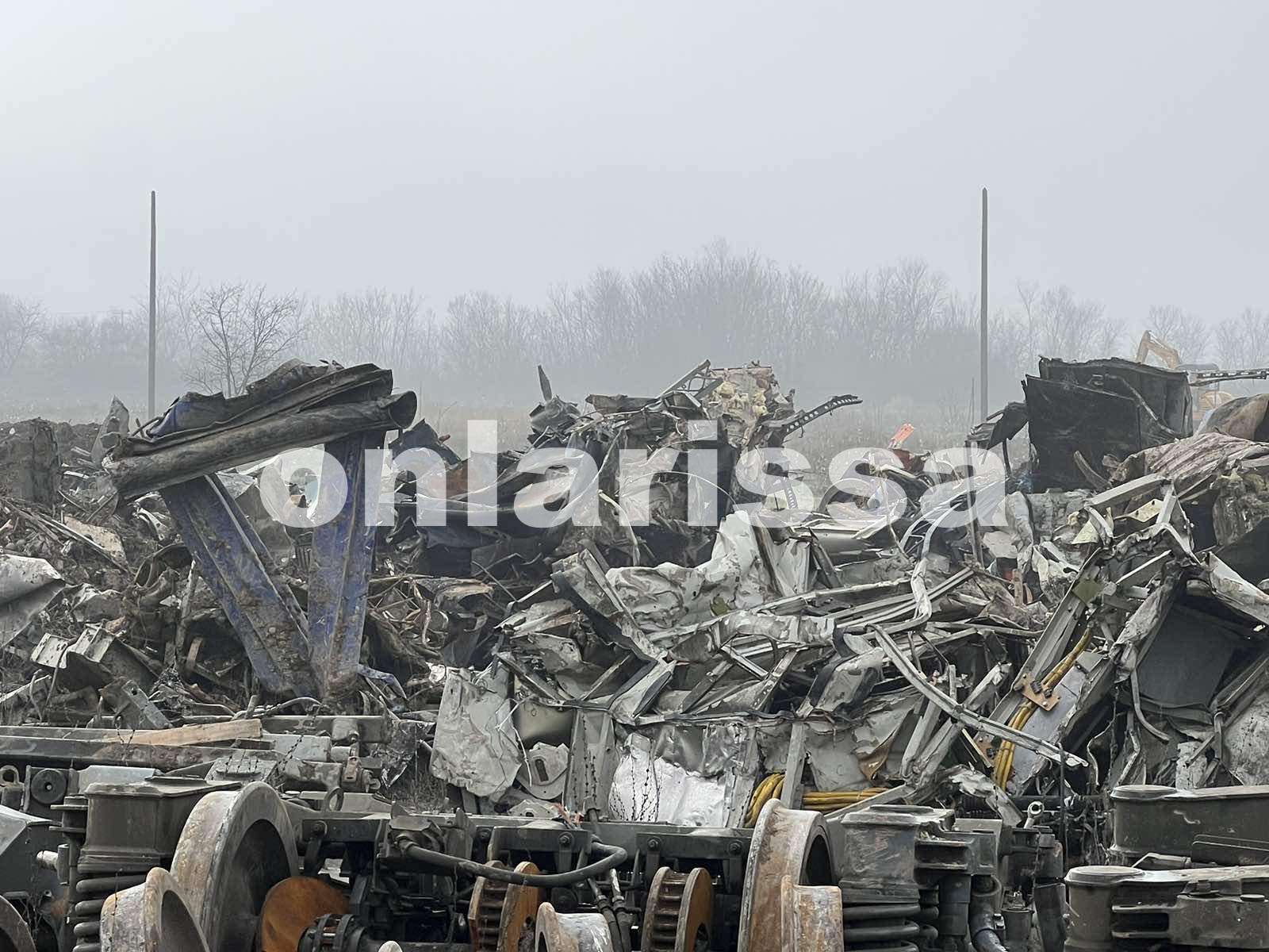 Σε άμορφες μάζες σιδερικών μετατράπηκαν τα μοιραία βαγόνια της τραγωδίας στα Τέμπη που κόστισε τη ζωή σε 57 ανθρώπους.