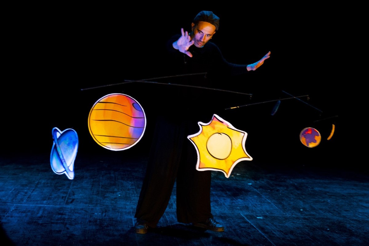 μέσα από το ζωντάνεμα της ζωγραφικής του αφηγητή, τα σχέδια του γεμίζουν τη σκηνή δημιουργώντας φιγούρες, σκηνικά, κούκλες και όλα όσα χρειάζεται για να διηγηθεί το παραμύθι: βόες, ελέφαντες, πλανήτες, αεροπλάνα, μπαομπάπ, ηφαίστεια, ερήμους, βουνά, τριαντάφυλλα και φυσικά τον Μικρό Πρίγκιπα ως φιγούρα και ως κούκλα σε ανθρώπινο μεγέθος.